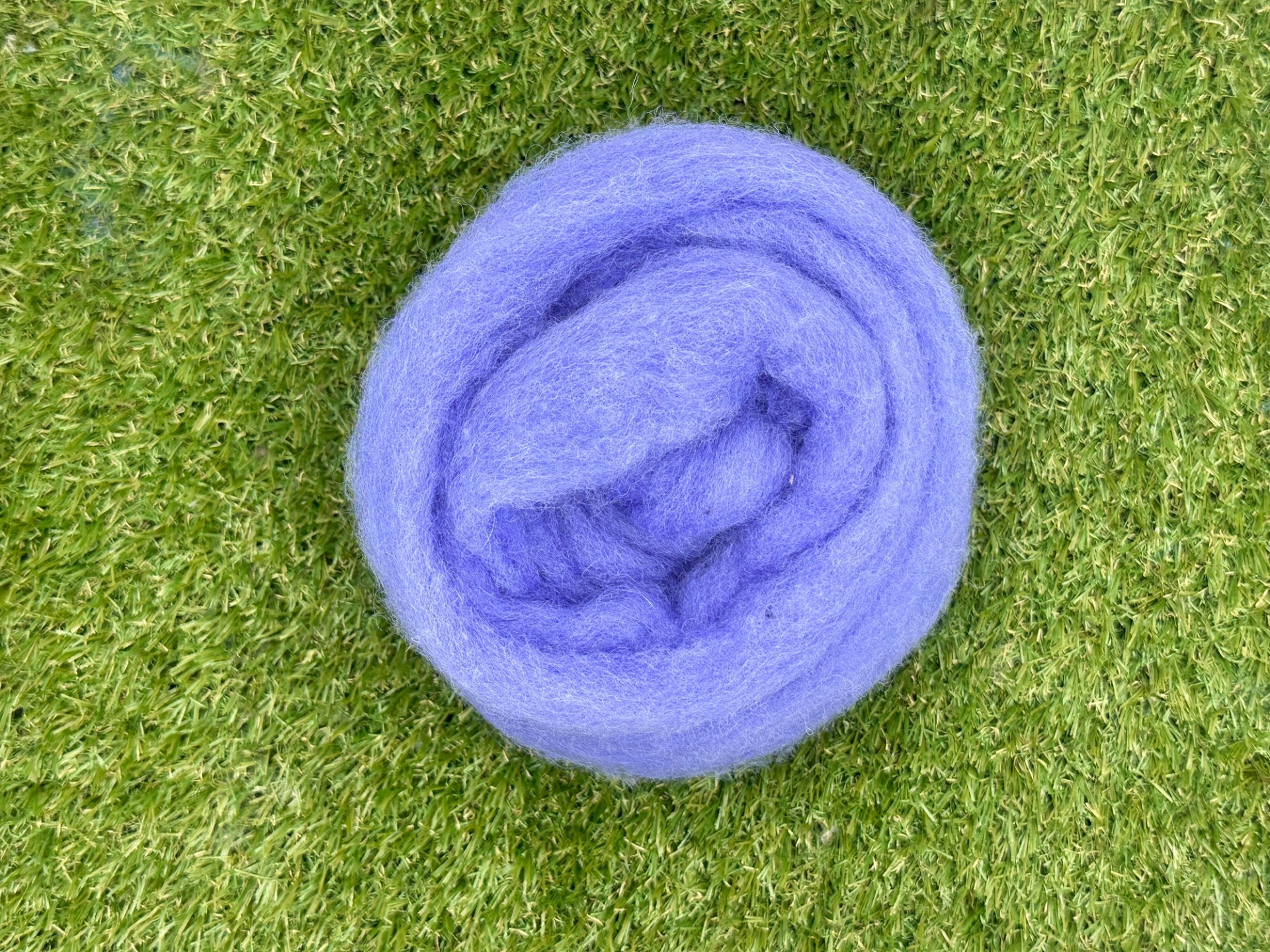Deze gekaarde Corriedale in lont in de kleur paars/blauw geeft karakter aan elk handwerkproject. De wol is zorgvuldig gekaard voor een gelijkmatige vezelstructuur en daardoor zeer geschikt voor spinnen, (naald)vilten, natvilten en weven.