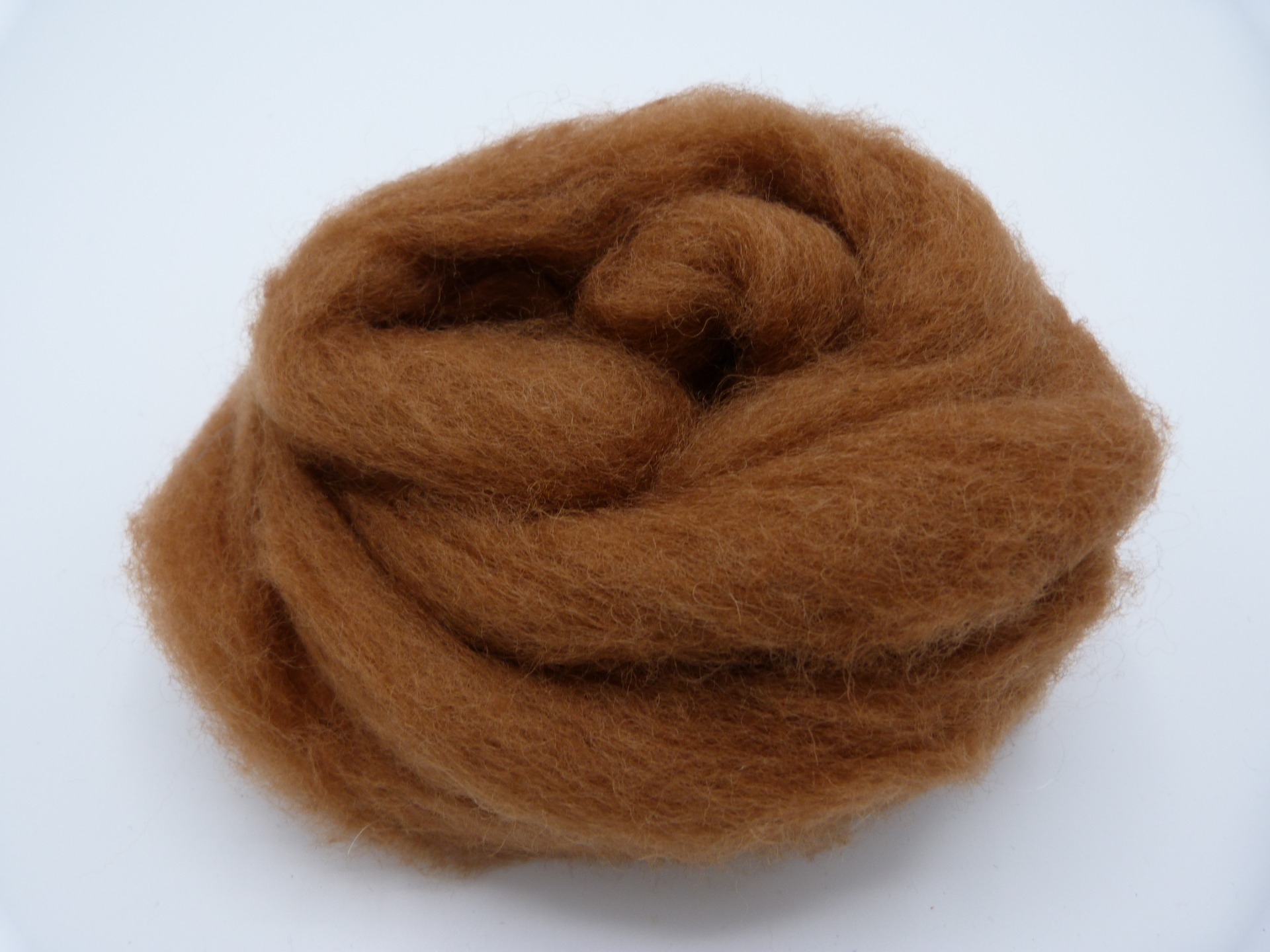 Kaardvlies Corriedale in lont getrokken licht-bruin.