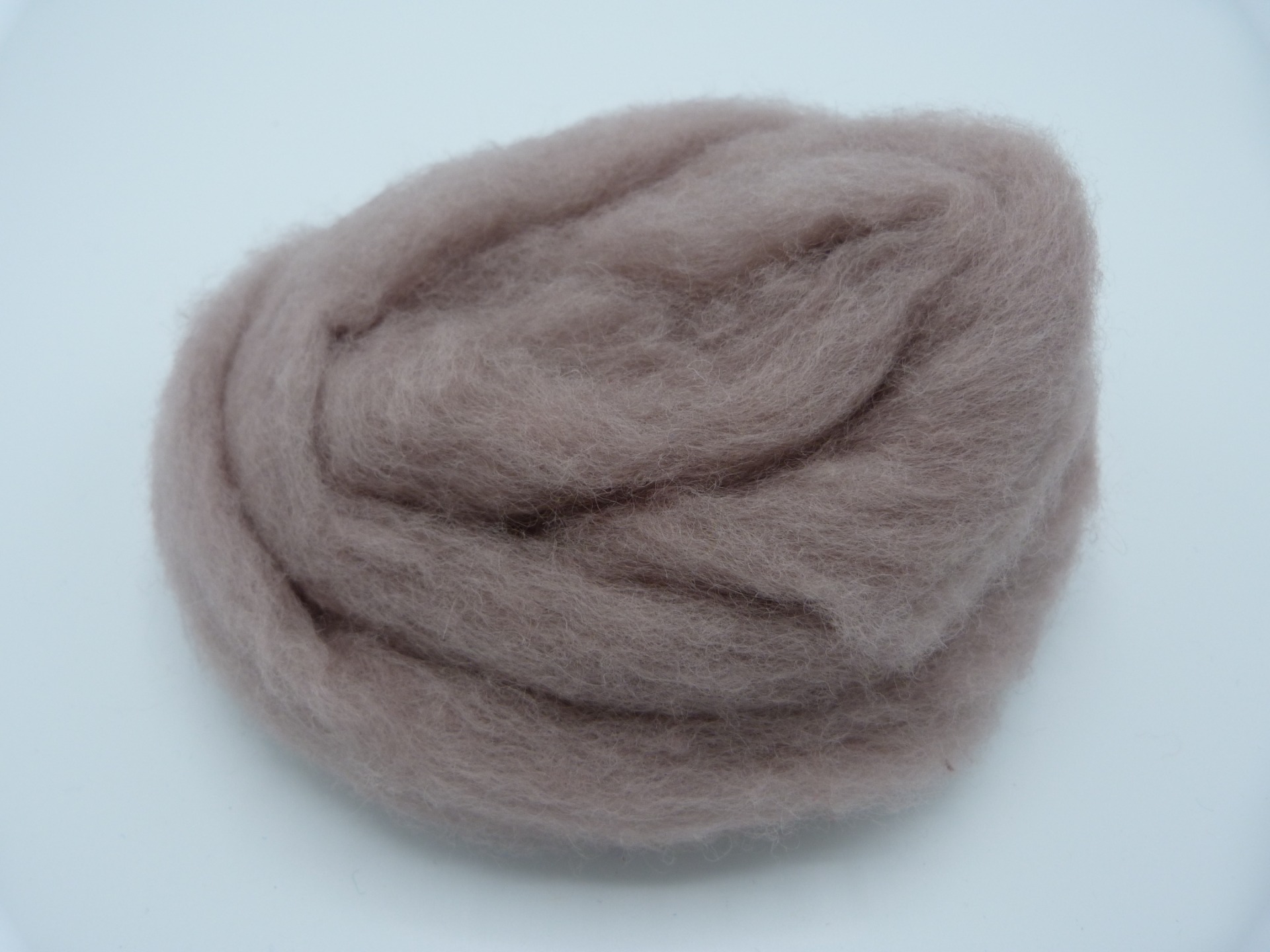 Gekleurde kaardvlies Corriedale in lont getrokken cappuccino.