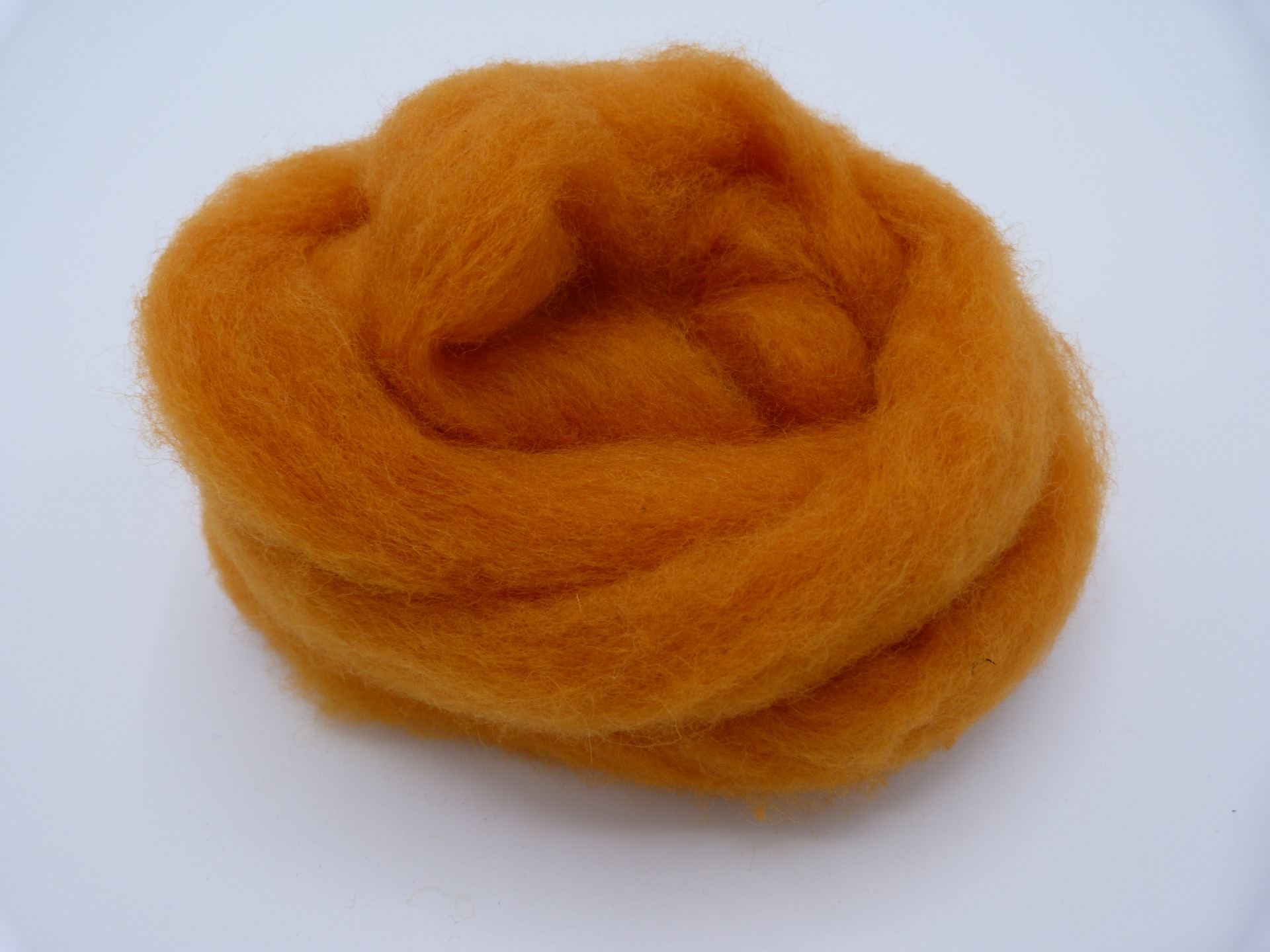 Gekleurde kaardvlies Corriedale in lont oranje.