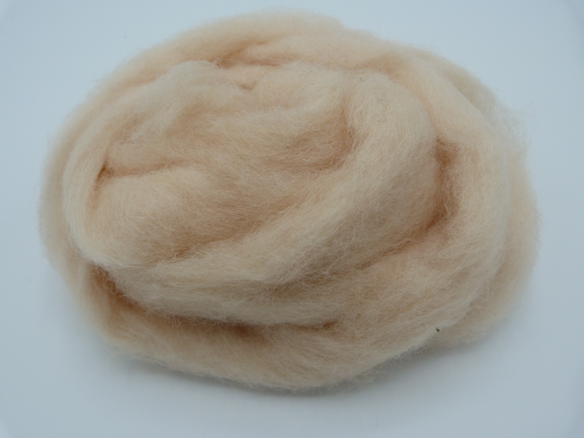 Deze gekaarde corriedale in lont is verkrijgbaar in porties van 25 gram.