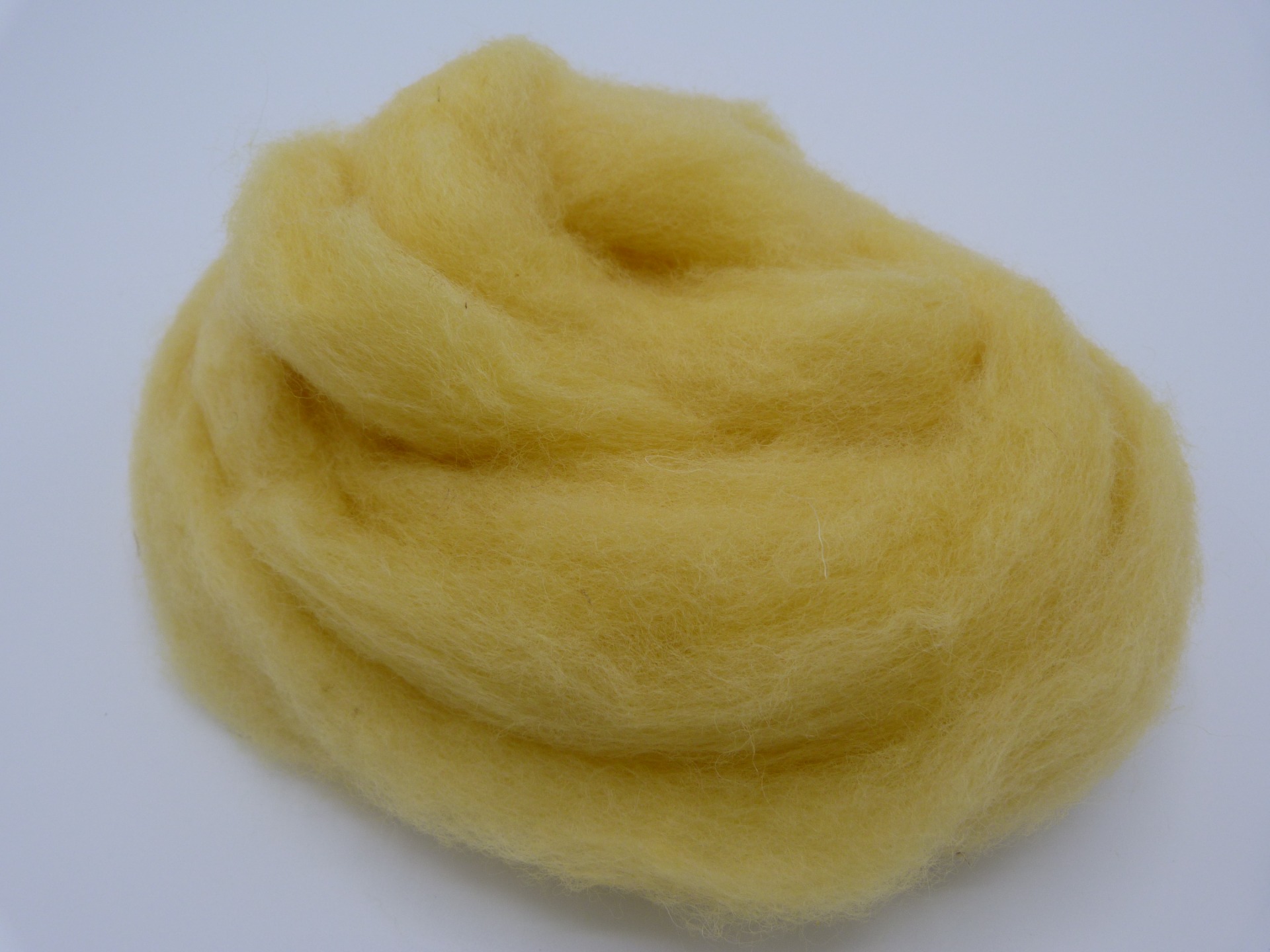 Gekleurde kaardvlies Corriedale in lont licht-geel.