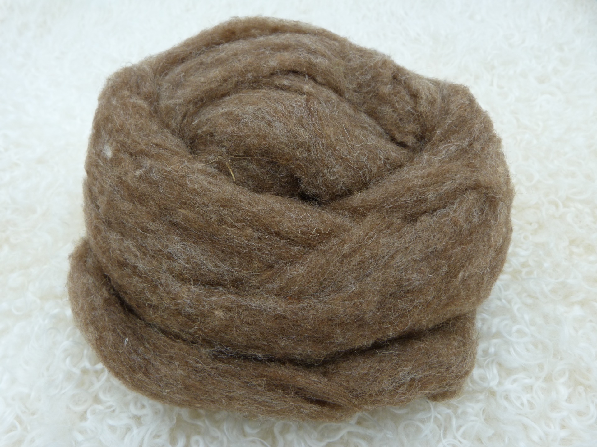 Natuurlijk bruine kaardvlies Moorit Shetland in lont.