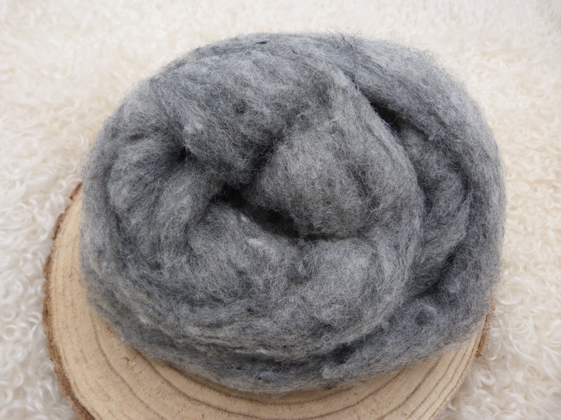 Natuurlijk grijze kaardvlies Cheviot in lont.