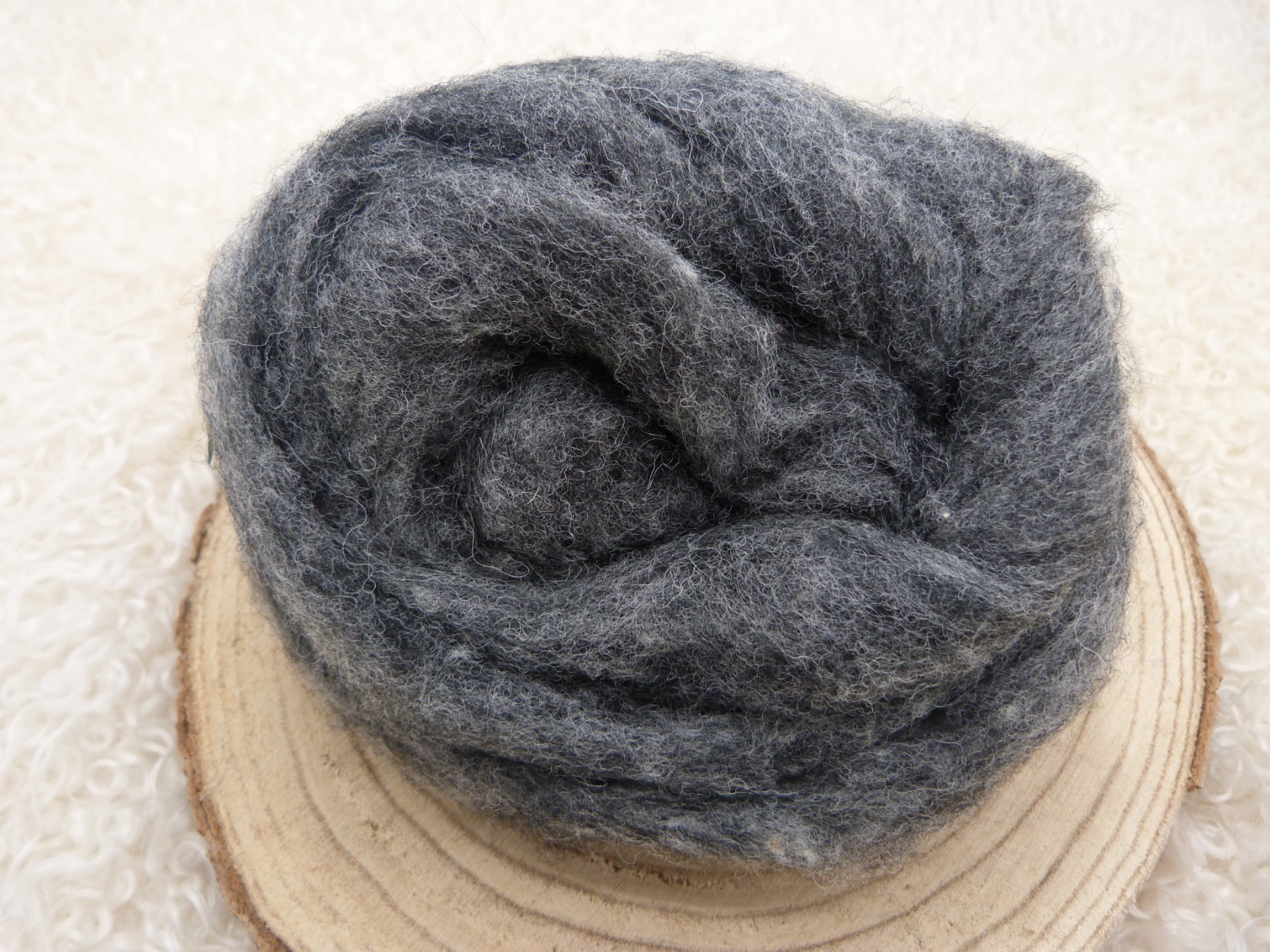 Natuurlijk donker grijze kaardvlies Cheviot in lont.