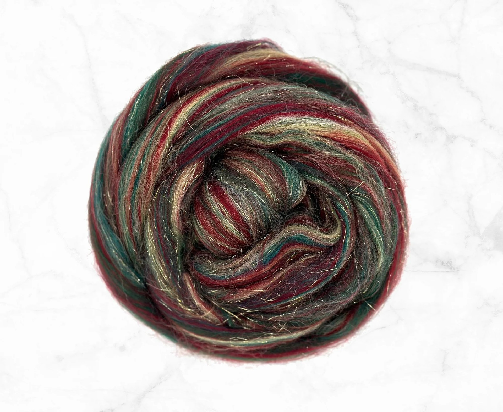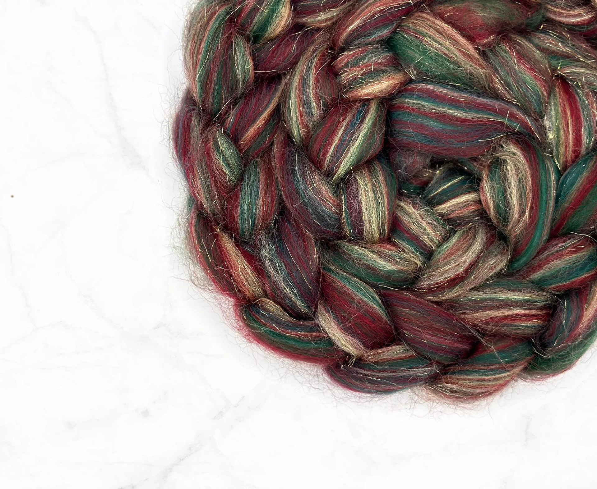 Klassieke kersttinten samengebracht in een luchtige, zachte lontwol! Diepe groentinten, warm rood en een vleugje goud zorgen samen voor een feestelijke vezel met subtiele glans. De samenstelling van de kerstkleuren lont is 90% Corriedalewol en 10% Stellina. De lengte van de lont is ongeveer 2 meter per 50 gram en de breedte is 2,5 cm. Met deze lontwol kan je onder andere spinnen, weven, naaldvilten en natvilten.