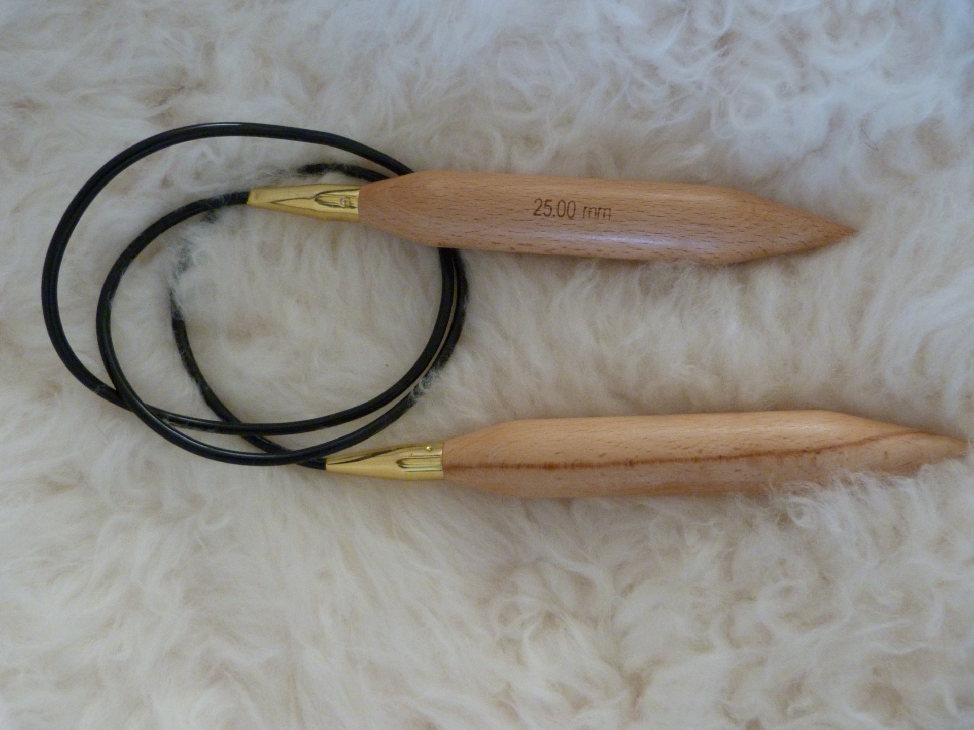 De breinaalden zijn 25mm dik en zijn van het merk KnitPro.