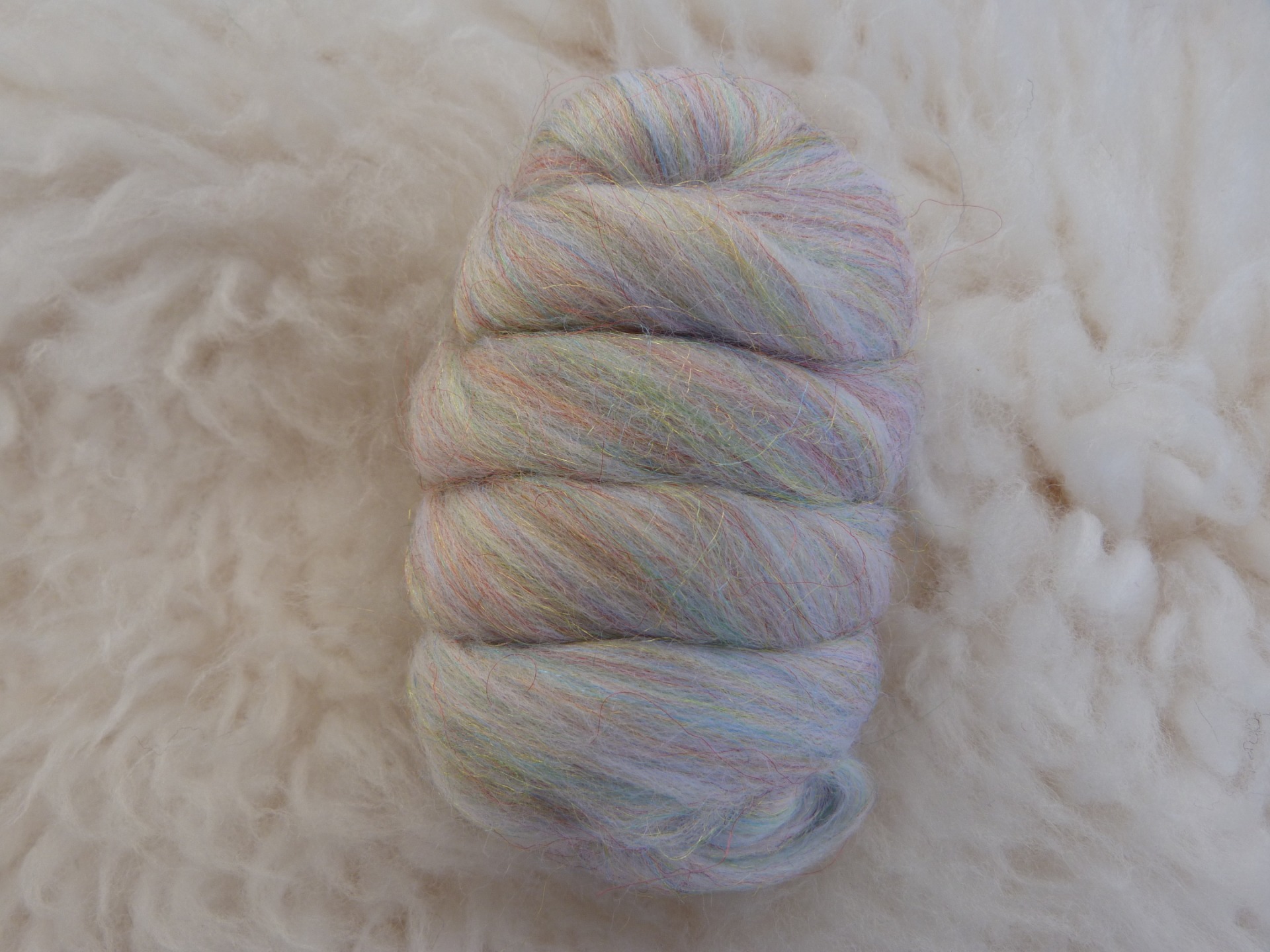 Deze mooie mix van 70% Merino wol 23 micron en 30% gekleurde Nylon garen geeft een heel speciaal effect bij het spinnen, natvilten, naaldvilten en andere handwerkdoeleinden.