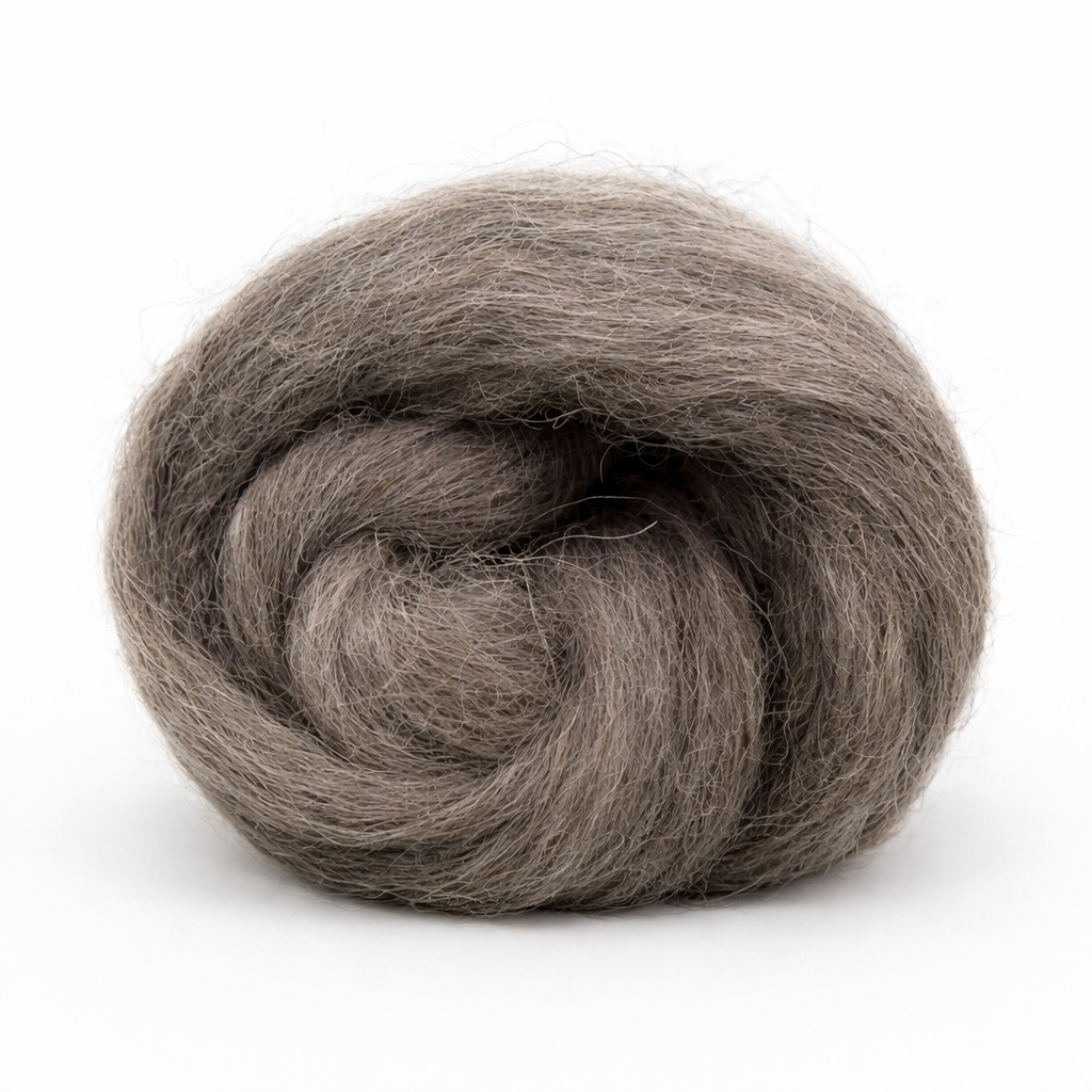 Een mooie grijze wol met een micron van ± 34. Deze wol is NIET geschikt om mee te xxl/arm breien! Deze wol is ook verkrijgbaar in de kleuren wit en licht bruin.