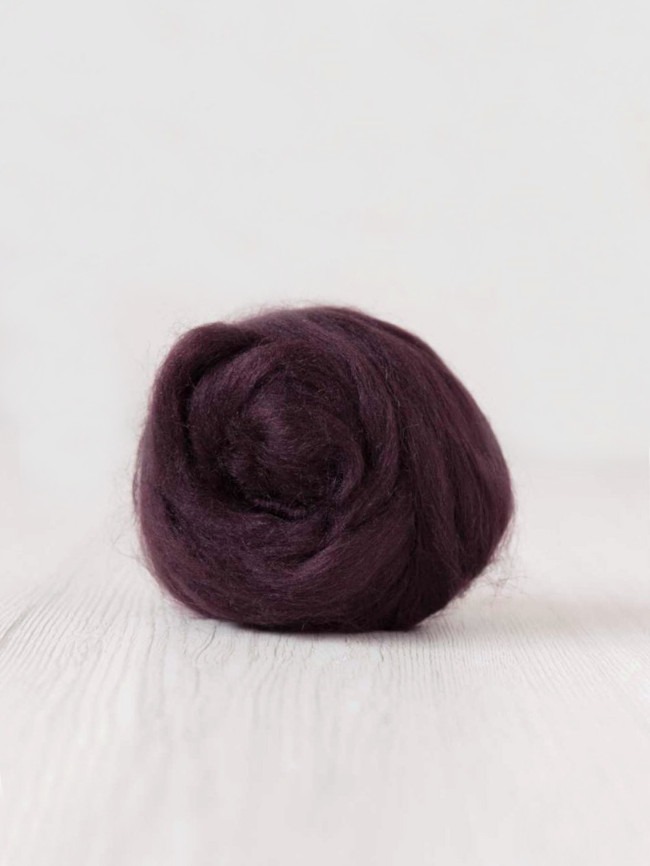 Deze viscose lont in bordeauxkleur, ook wel kunstzijde genoemd, is heerlijk zacht, soepel en licht glanzend. De warme kleur laat zich goed combineren met natuurlijke, neutrale en donkere woltinten en wordt vaak gebruikt als accentmateriaal of om te mengen met andere vezels.