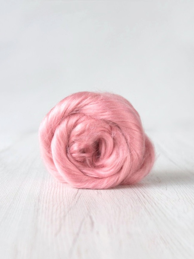 Deze viscose lont in lichtroze tint, ook wel kunstzijde genoemd, is heerlijk zacht, soepel en licht glanzend. De zachte, verfijnde kleur geeft een rustige en elegante uitstraling en laat zich mooi combineren met lichte en neutrale woltinten.