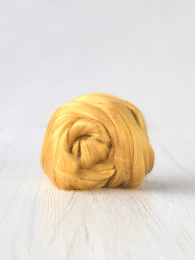 Deze viscose lont in okergele kleur, ook wel kunstzijde genoemd, is heerlijk zacht, soepel en licht glanzend. De warme, aardse tint geeft een natuurlijke uitstraling en combineert mooi met zowel neutrale als diepere woltinten.