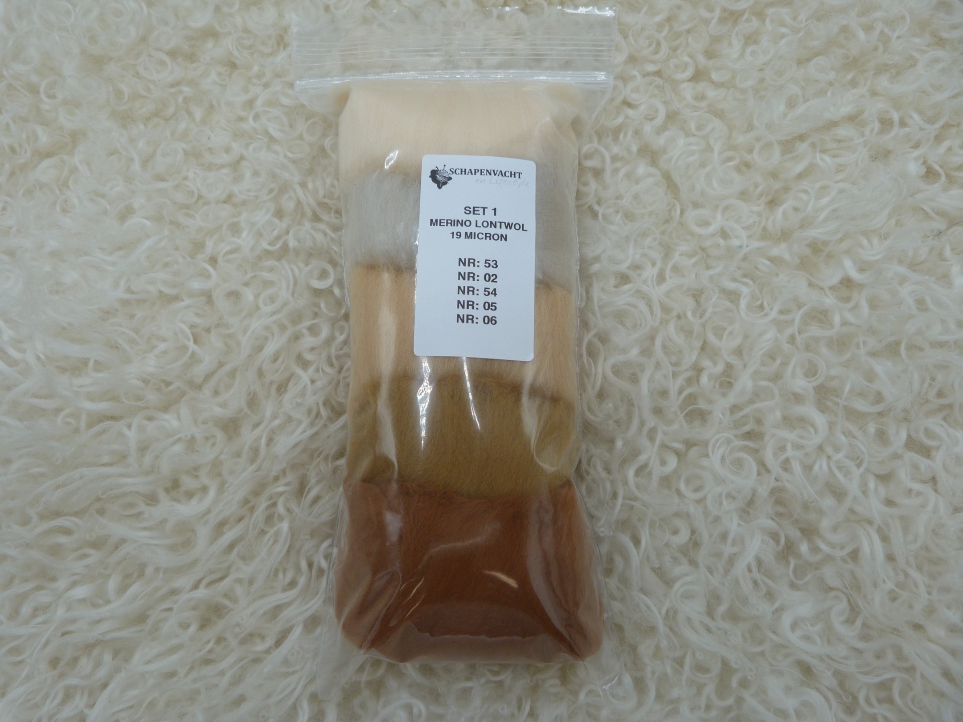 Deze set bestaat uit 5 x 10 gram van verschillende kleuren van onze extra fijne merino lontwol van 19 mic, de wol is mulesing-vrij en is afkomstig uit zowel Australië als Zuid-Amerika en zijn zorgvuldig geselecteerd om een ​​constante kwaliteit te garanderen. Het verven voldoet aan Oeko-Tex Standard 100 en gebeurt bij onze leverancier welke gecertificeerd is met het GOTS 5.0 en GRS certificaat.