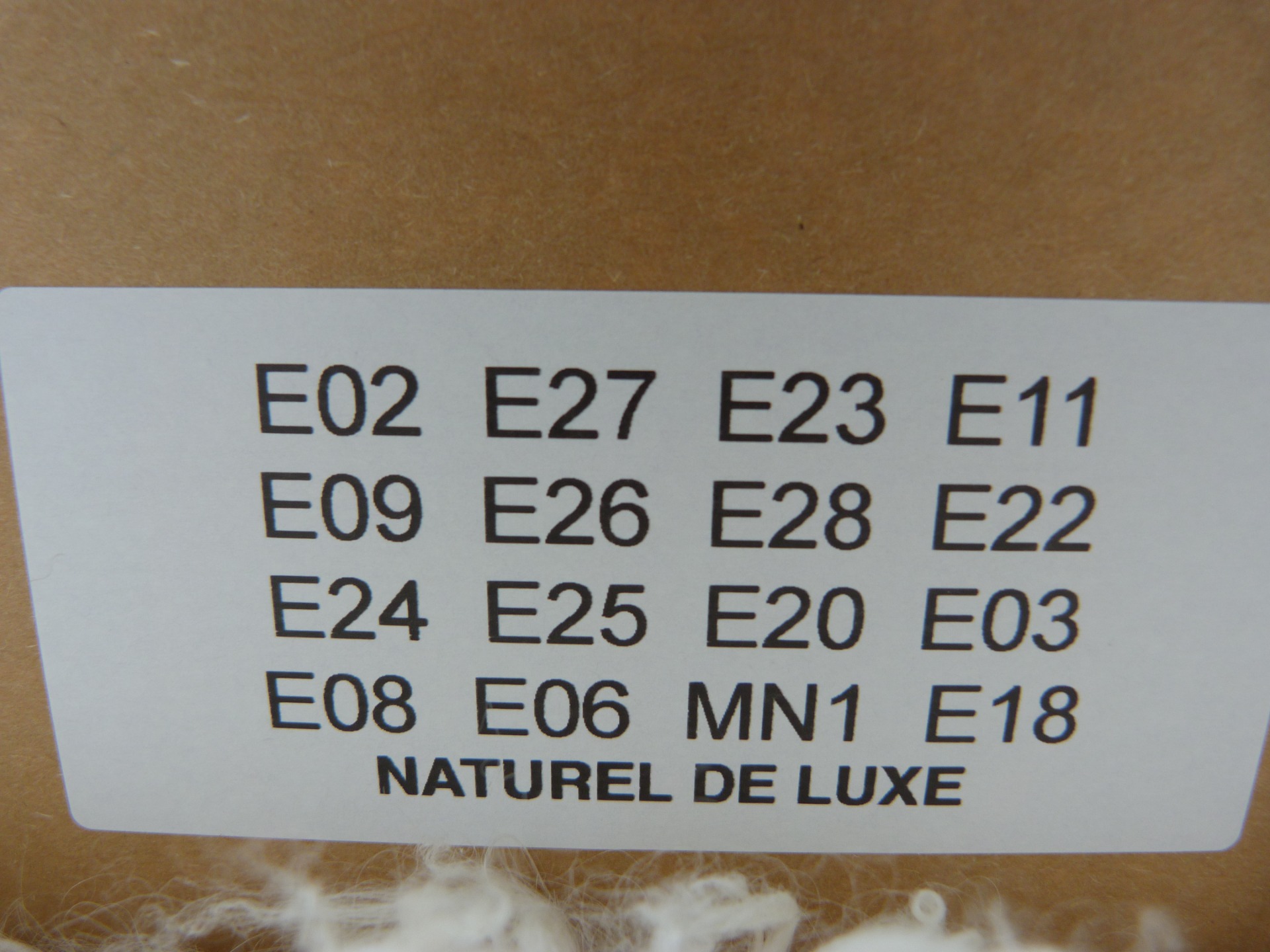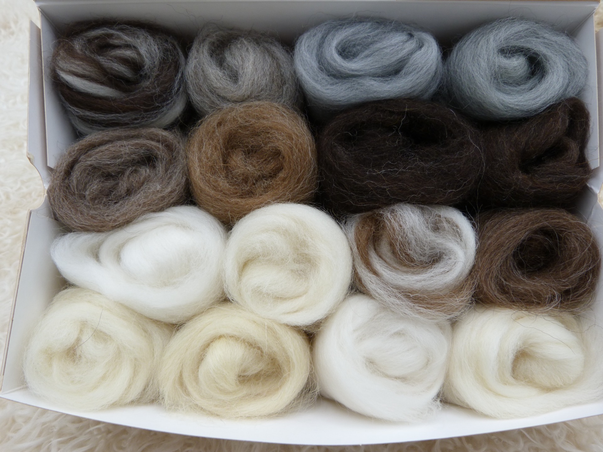 De doos waar deze naturel kleuren in zitten is van stevig karton en heeft een handig groot venster zodat je in 1 oogopslag de natuurlijke soorten kunt zien. Aan de binnenkant van de doos zit nog een sticker met alle kleurnummers op volgorde, handig als er een soort op begint te raken om deze na te kunnen bestellen! Ook in onze webshop te bestellen een natuurlijke box met andere kleuren en soorten wol.