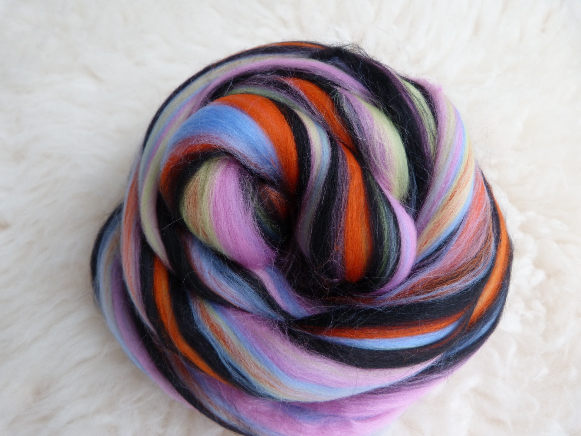 Deze lontwol bestaat uit 70% merino wol 19 micron en 30% tussahzijde, deze mengeling bestaat uit o.a de kleuren oranje, zwart, roze, licht blauw en licht groen. Deze melange is speciaal voor schapenvacht en lifestyle geblend! De lontwol is afkomstig uit zowel Australië als Zuid-Amerika en is zorgvuldig geselecteerd om een ​​constante kwaliteit te garanderen, de tussahzijde komt uit China. Deze lontwol is mulesing vrij. Het verven voldoet aan Oeko-Tex Standard 100 en gebeurt bij onze leverancier welke gecertificeerd is met het GOTS 5.0 en GRS certificaat. Deze mix is zeer geschikt om mee te natvilten, droogvilten, spinnen en te weven. Er zit ongeveer 4 meter lont in 100 gram.