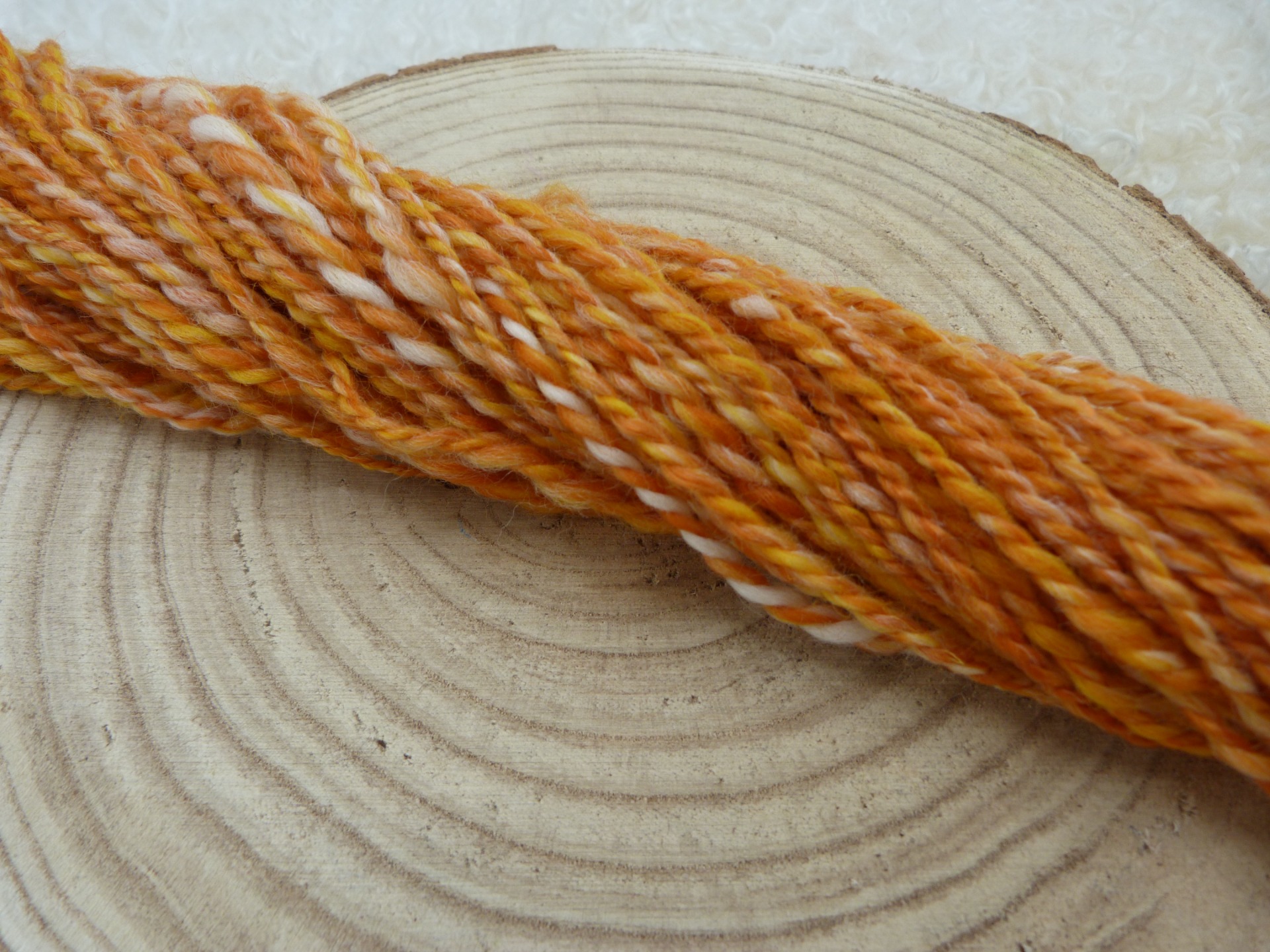 Deze corriedale lontwol 90% is gemixed met 10% gekleurde tencel, deze mix is door ons zelf samengesteld en bestaat uit de kleuren naturel wit, warm oranje, geel en 10% gekleurde tencel kleur warm oranje. Deze 10% tencel geeft een mooie glans in deze frisse kleuren mix.De lontwol heeft een micron van ongeveer 27 en is afkomstig uit Nieuw-Zeeland en is zorgvuldig geselecteerd om een ​​constante kwaliteit te garanderen. De vezellengte is ongeveer 80 mm en voelt aangenaam aan. Deze lontwol is zeer geschikt om mee te natvilten, droogvilten, spinnen en te weven. Er zit ongeveer 4 meter lont in 100 gram.