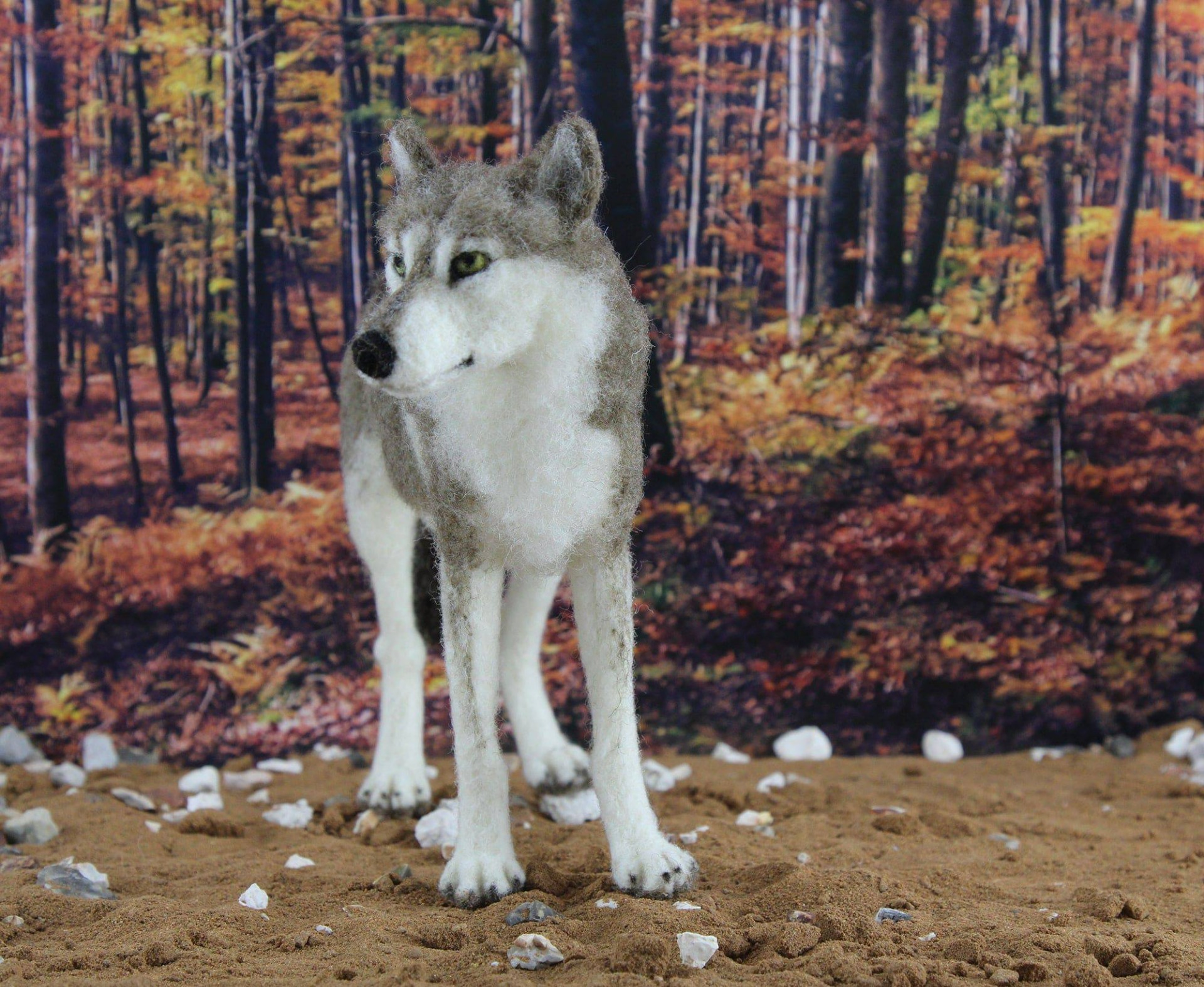De afmetingen van de wolf zal ongeveer zijn 18 cm hoog en 27 cm lang.