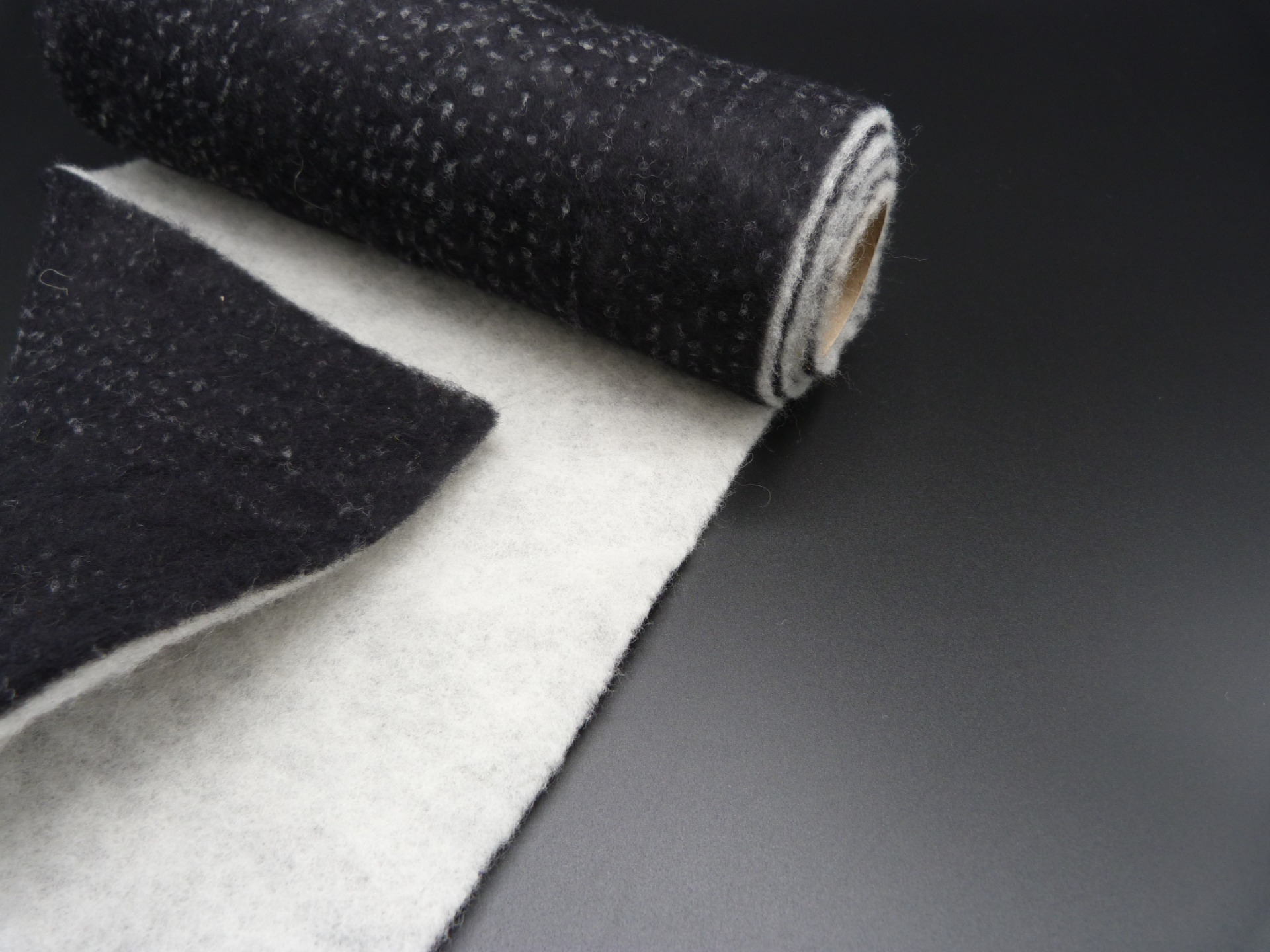 Deze in Duitsland geproduceerde naaldvlies is mooi egaal van structuur en heeft een micron van 19,5, dit naaldvlies bestaat uit 2 dunne lagen naaldvlies welke nogmaals door de naaldviltmachine gehaald worden en zo ontstaat er 2 kleuren naaldvlies, dit naaldvlies is afkomstig van mulesing vrije merino schapen, welke gehouden worden in Zuid-Amerika. Dit duo naaldvlies kan worden gebruikt voor o.a naaldvilten en natvilten maar ook zeer geschikt om wandkleden of kleding/tassen mee te maken. De breedte van het naaldvlies is 120 cm en het gewicht is ongeveer 140 g/m.
