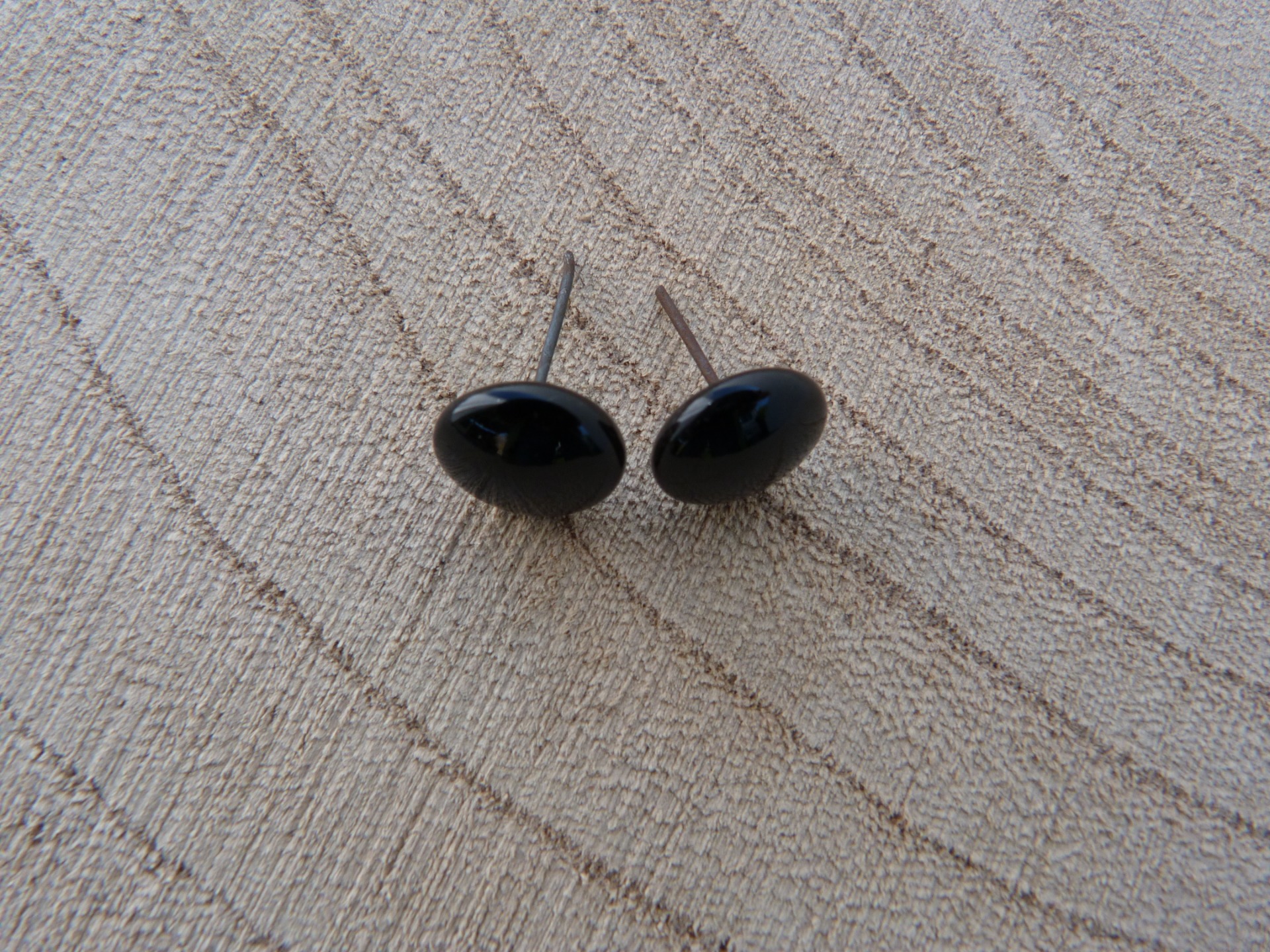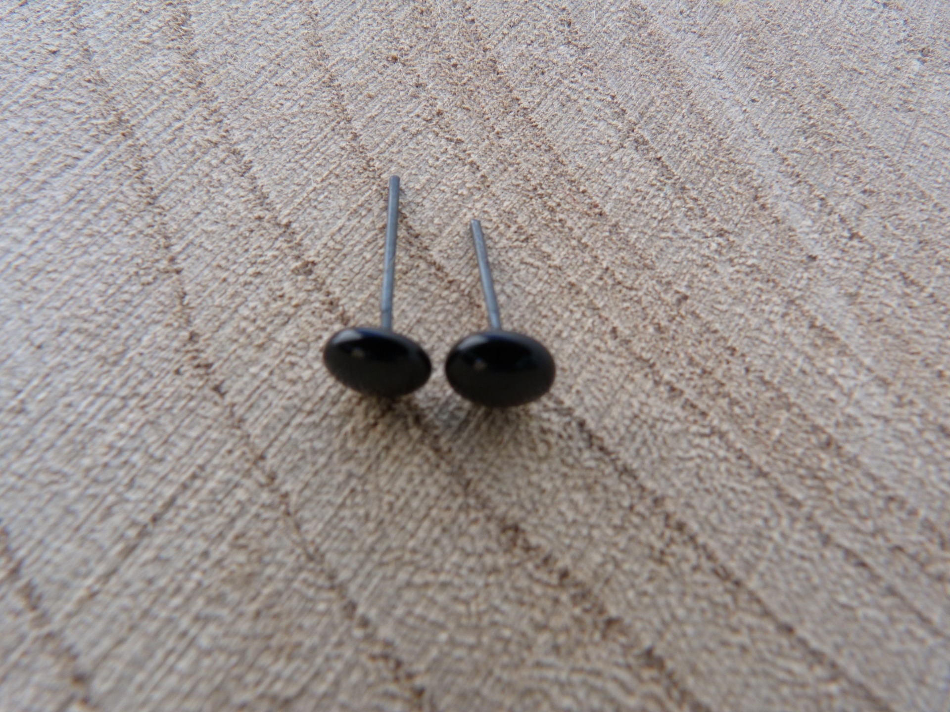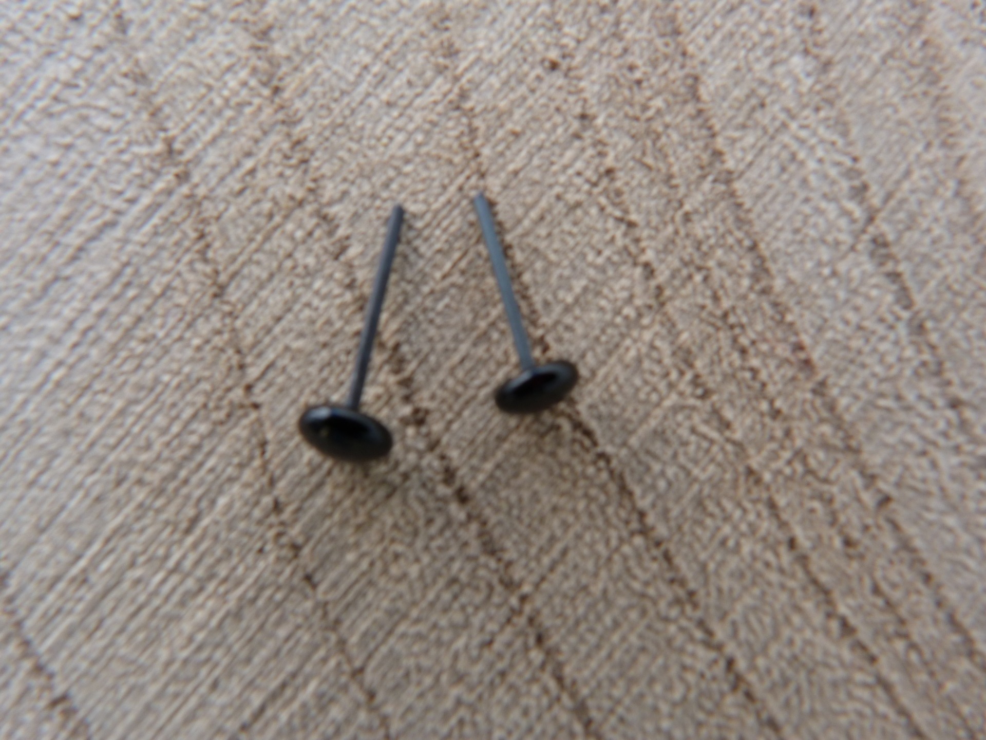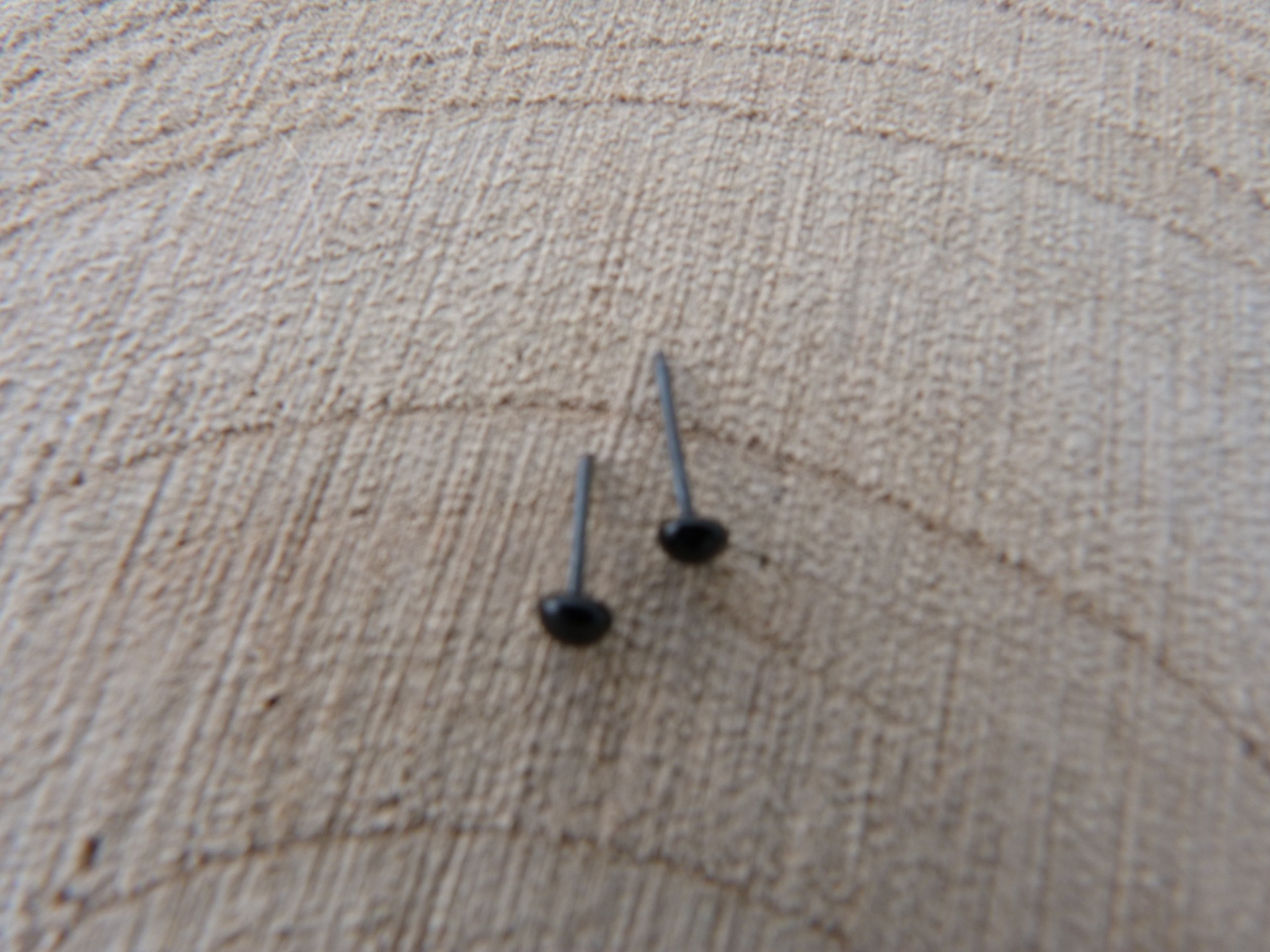Deze zwarte glazen oogjes zitten vast op een ijzeren pinnetje.