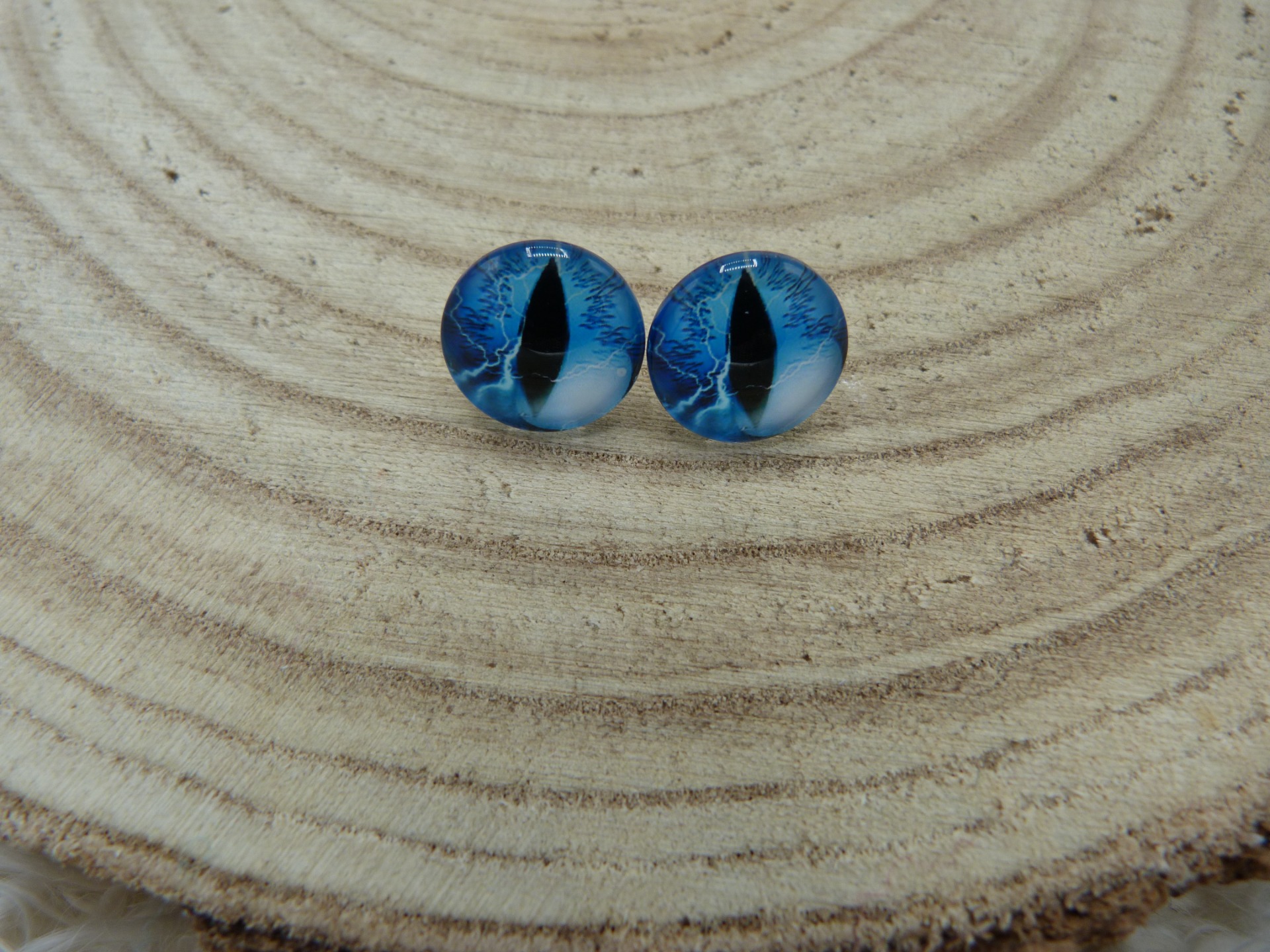 Glazen gekleurde katten oogjes blauw/wit op pin 10/16 mm.