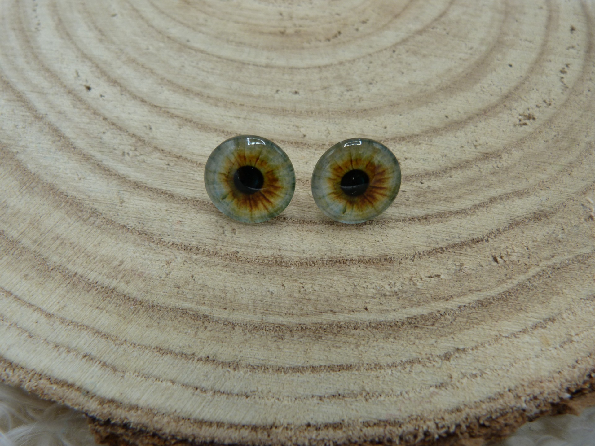 Deze gekleurde glazen oogjes met ronde pupil zitten vast op een ijzeren pinnetje en worden altijd per setje geleverd.
