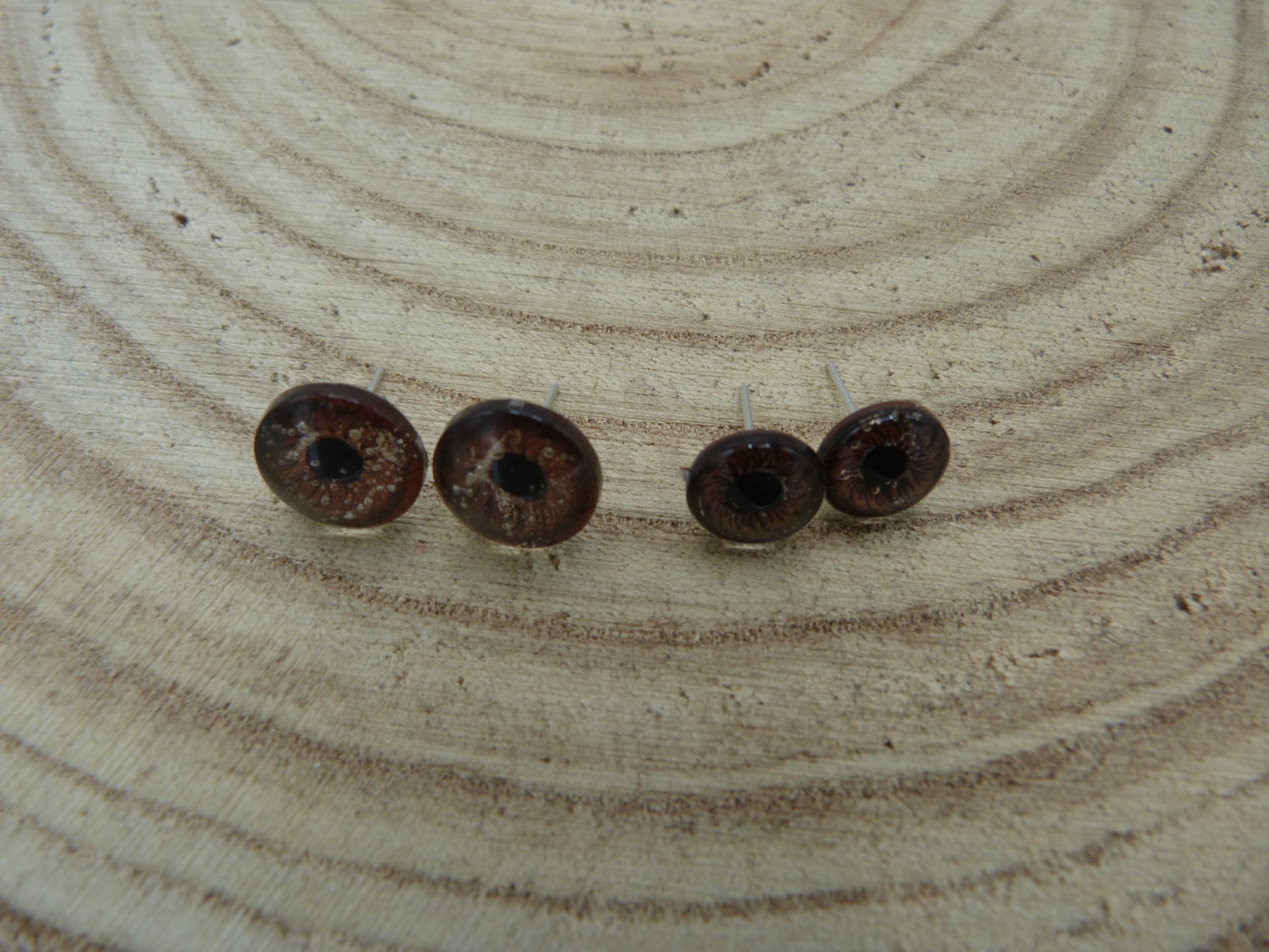 Deze bruine oogjes met ronde pupil zitten vast op een ijzeren pinnetje en worden altijd per setje geleverd.