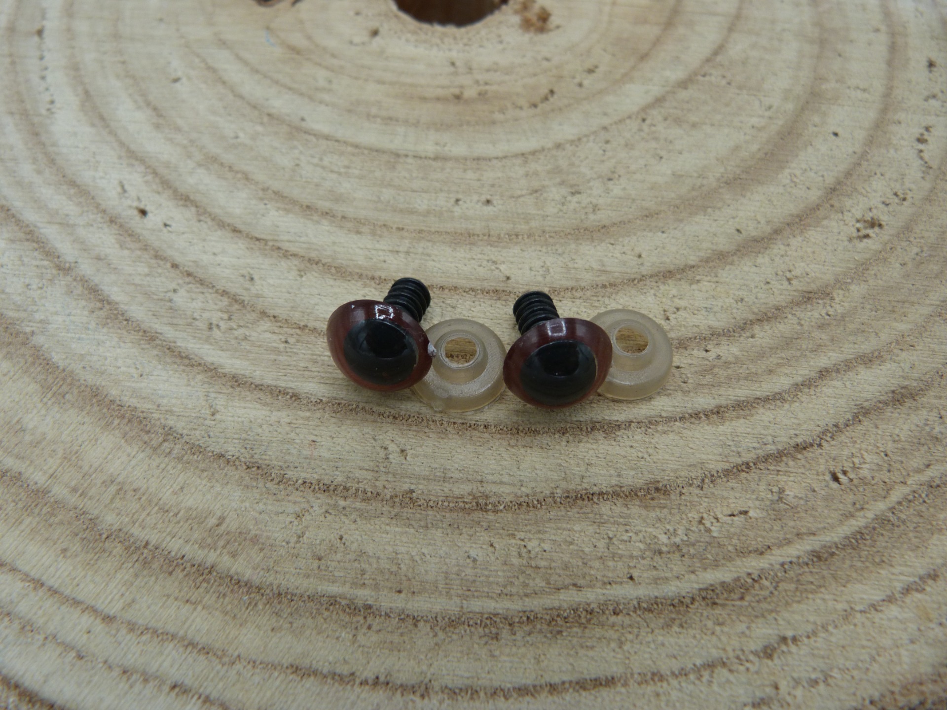 Deze bruine oogjes met ronde pupil zitten vast op een plastic pinnetje en kan worden vast gezet door middel van een ringetje, worden altijd per paar geleverd ( ook kan je het plastic pin makkelijk verwijderen en zo je oogje lijmen op diertje).