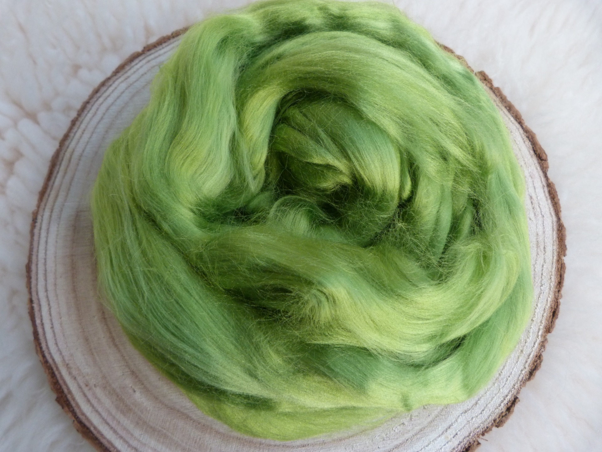 Viscose ook wel kunstzijde genoemd is heerlijk zacht ,absobeerd en ademend goed. Onze viscose is afkomstig uit Duitsland en geverfd in Italië volgens de Oeko-Tex Standard 100. 100 gram viscose is ongeveer 4 meter. De viscose tops zijn perfect voor zowel naald- als nat vilten , spinnen en met de hand weven .