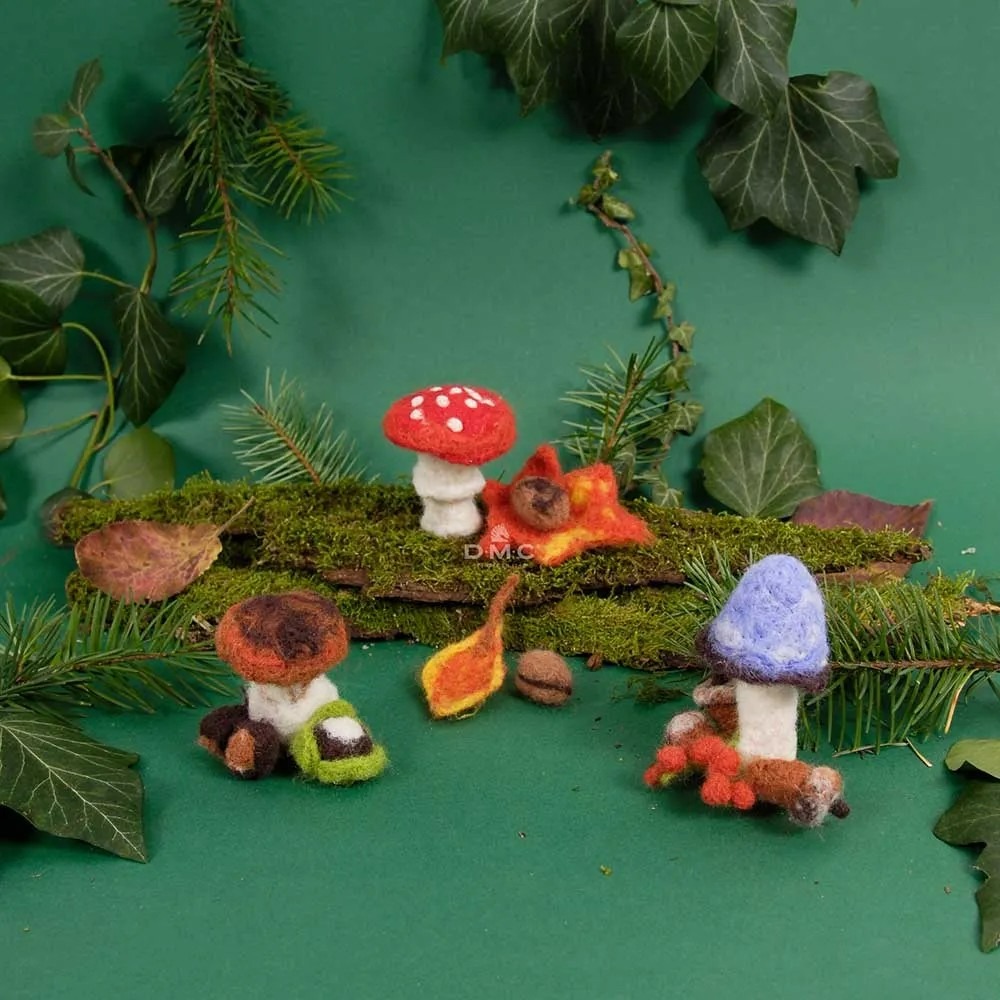 Met deze DMC naaldvilt kit werk je met een viltnaald en 100% wol om realistische paddenstoelen te vilten. Dankzij de duidelijke stap-voor-stap instructies met foto’s zie je precies hoe elk figuurtje vorm krijgt. Geschikt voor beginners.