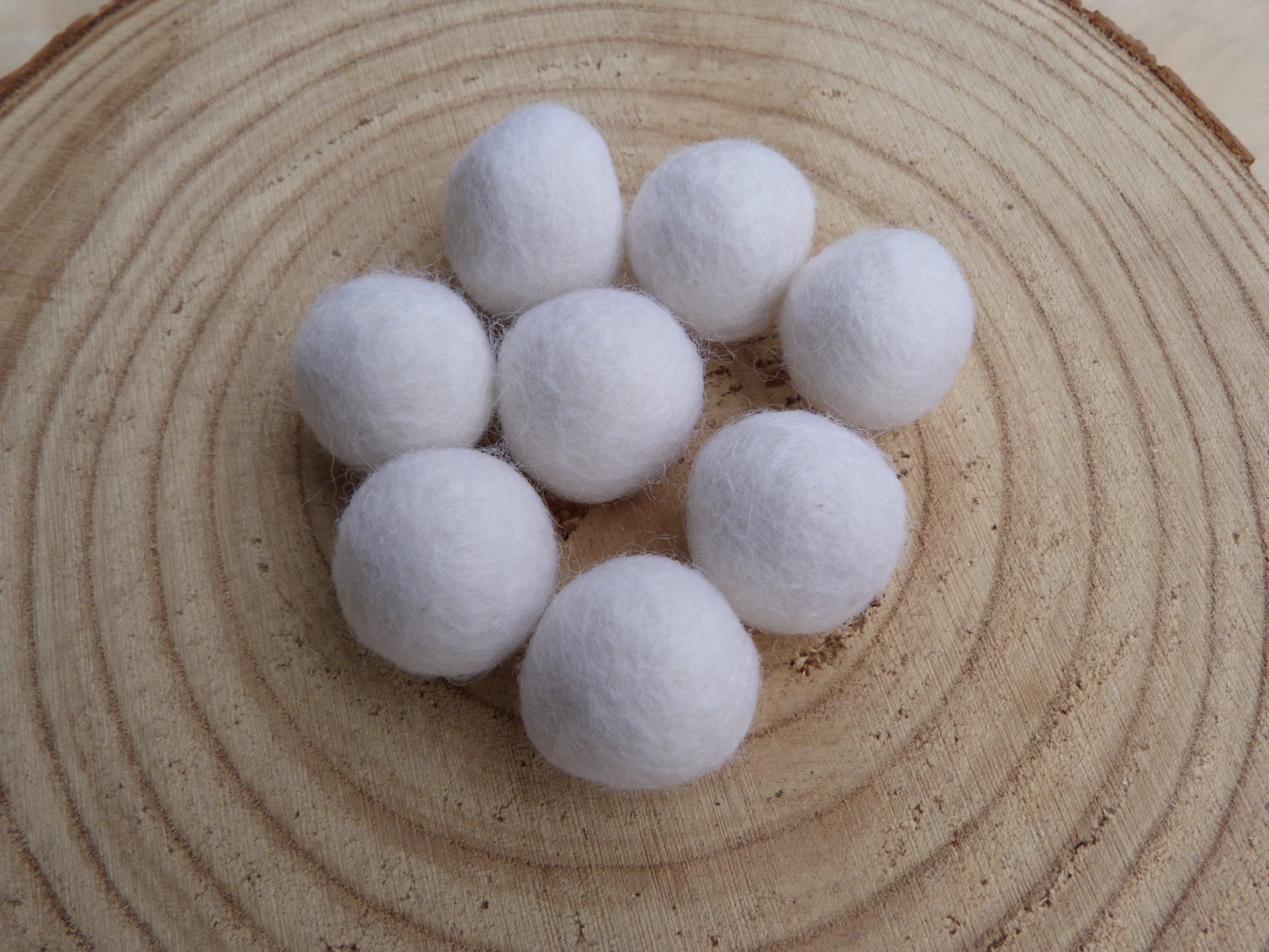 Deze viltballetjes worden handgemaakt in Nepal, ieder balletje is dus uniek. Elk balletje is ± 2 cm doordat het handgemaakt is kan dus de omvang per balletje verschillen. De balletjes komen naturel aan bij onze leverancier en worden geverfd bij hun in de fabriek volgens Oeko-Tex-normen!