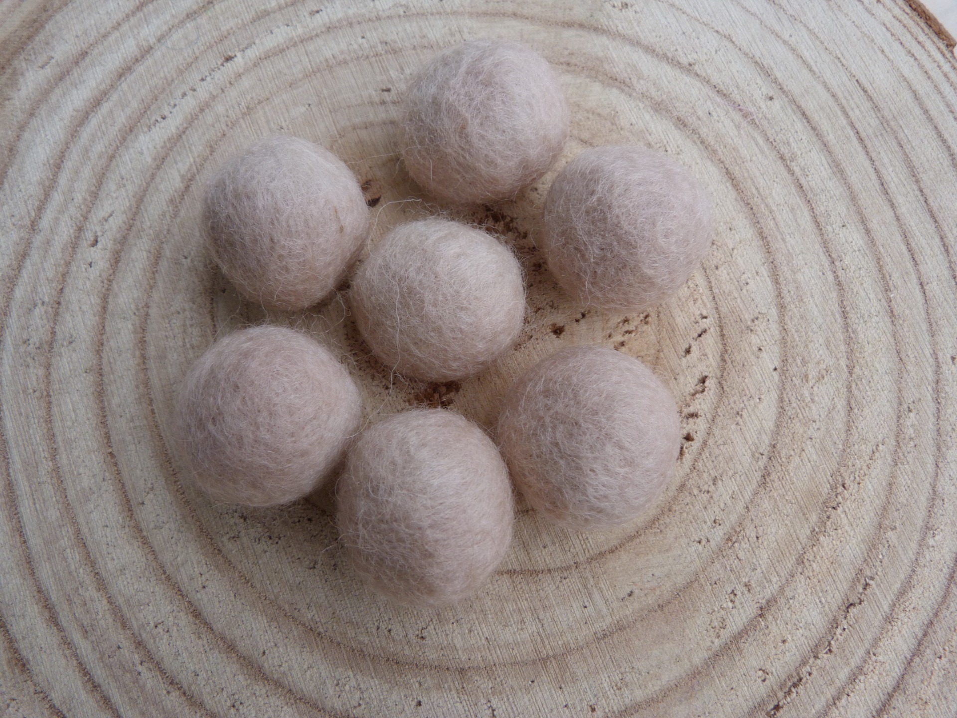 Deze viltballetjes worden handgemaakt in Nepal, ieder balletje is dus uniek. Elk balletje is ± 2 cm doordat het handgemaakt is kan dus de omvang per balletje verschillen. De balletjes komen naturel aan bij onze leverancier en worden geverfd bij hun in de fabriek volgens Oeko-Tex-normen!