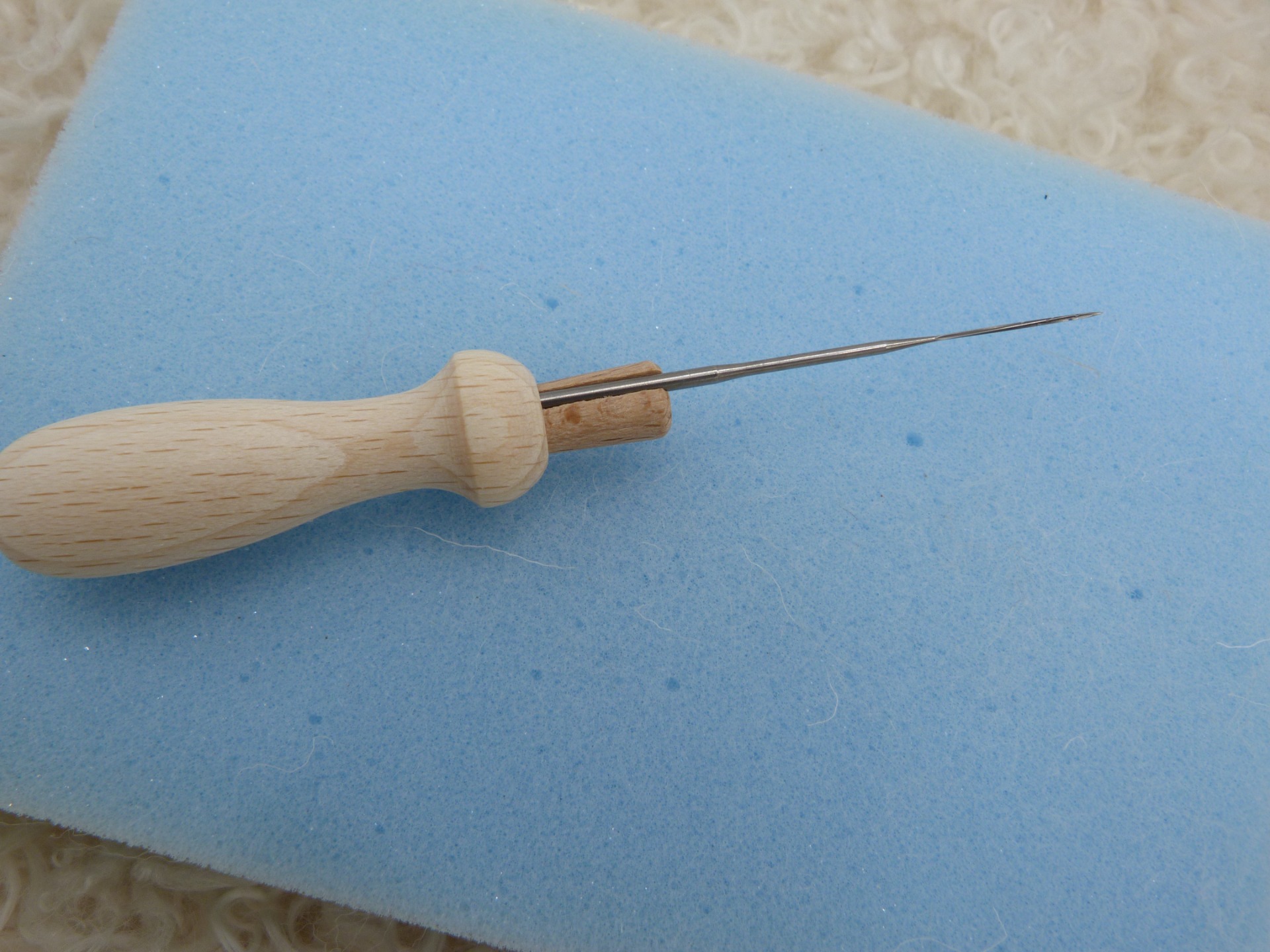 Deze viltnaaldhouder ligt lekker in de hand en is voor 1 naald, iedere naaldsoort past.