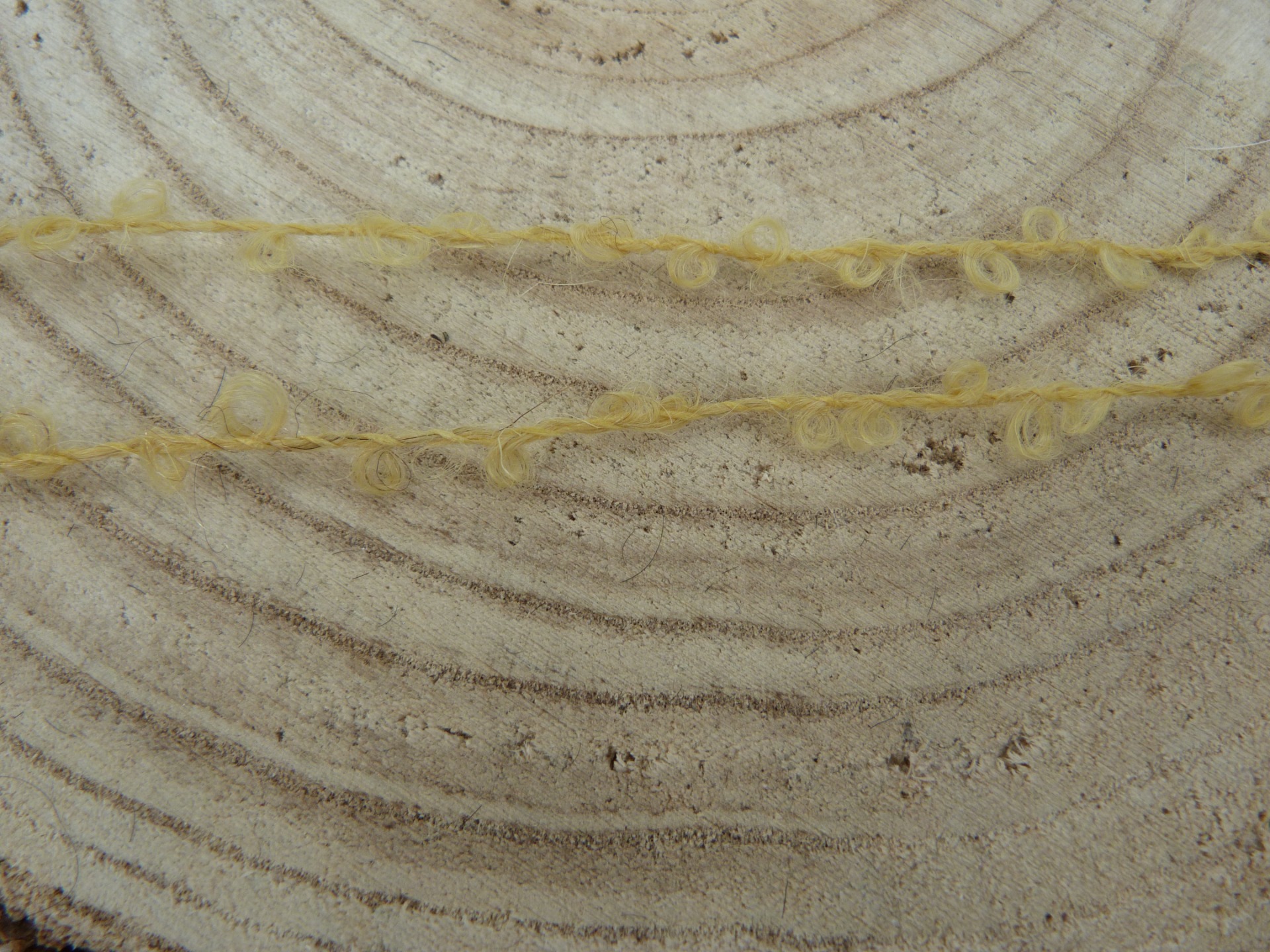 Met deze bouclé garen geef je pop een honingkleurig krullend haar.