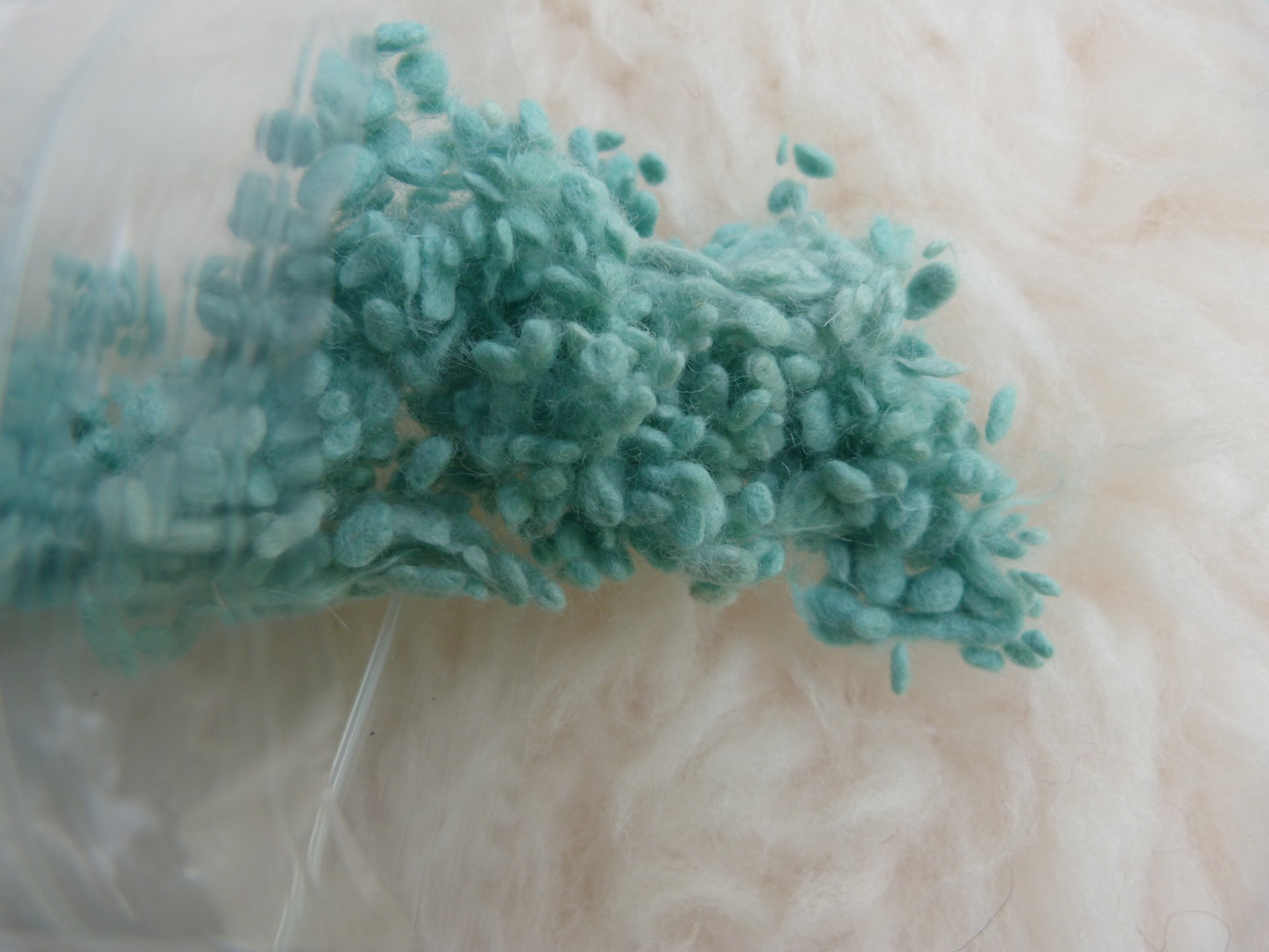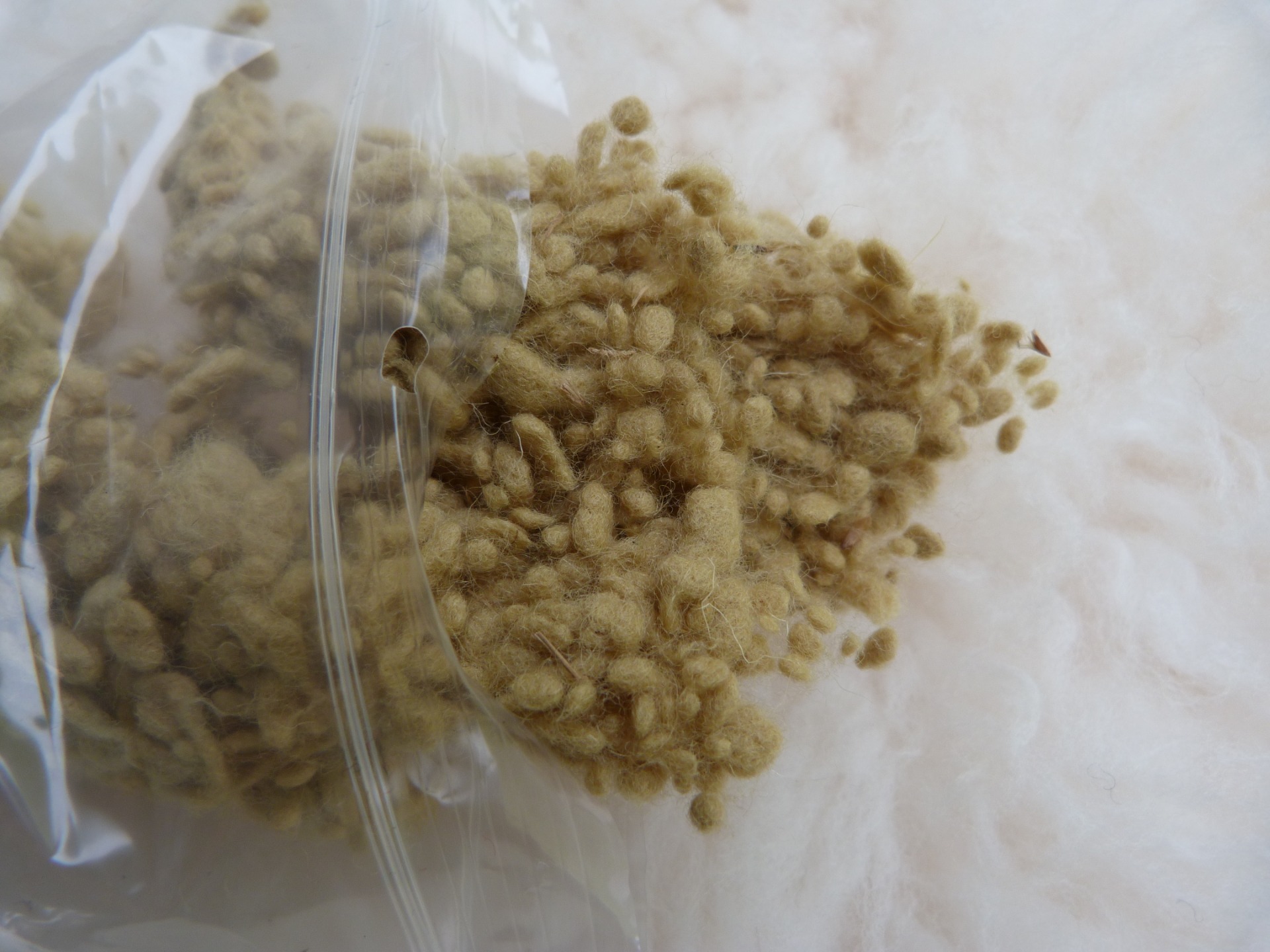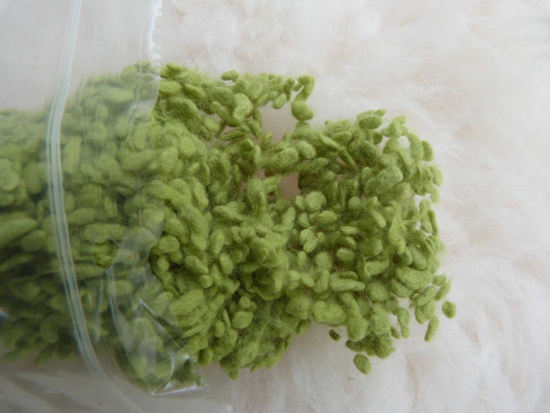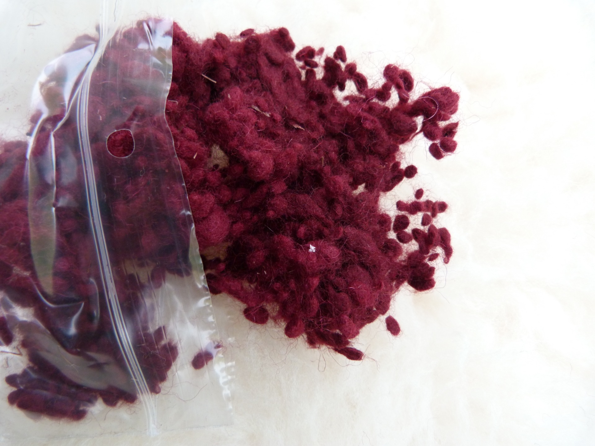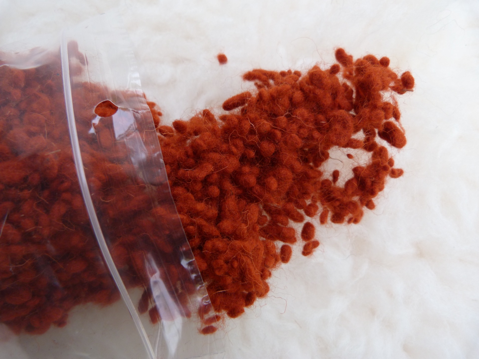 Ook verkrijgbaar witte natuurlijke wool nepps om zelf te kleuren.