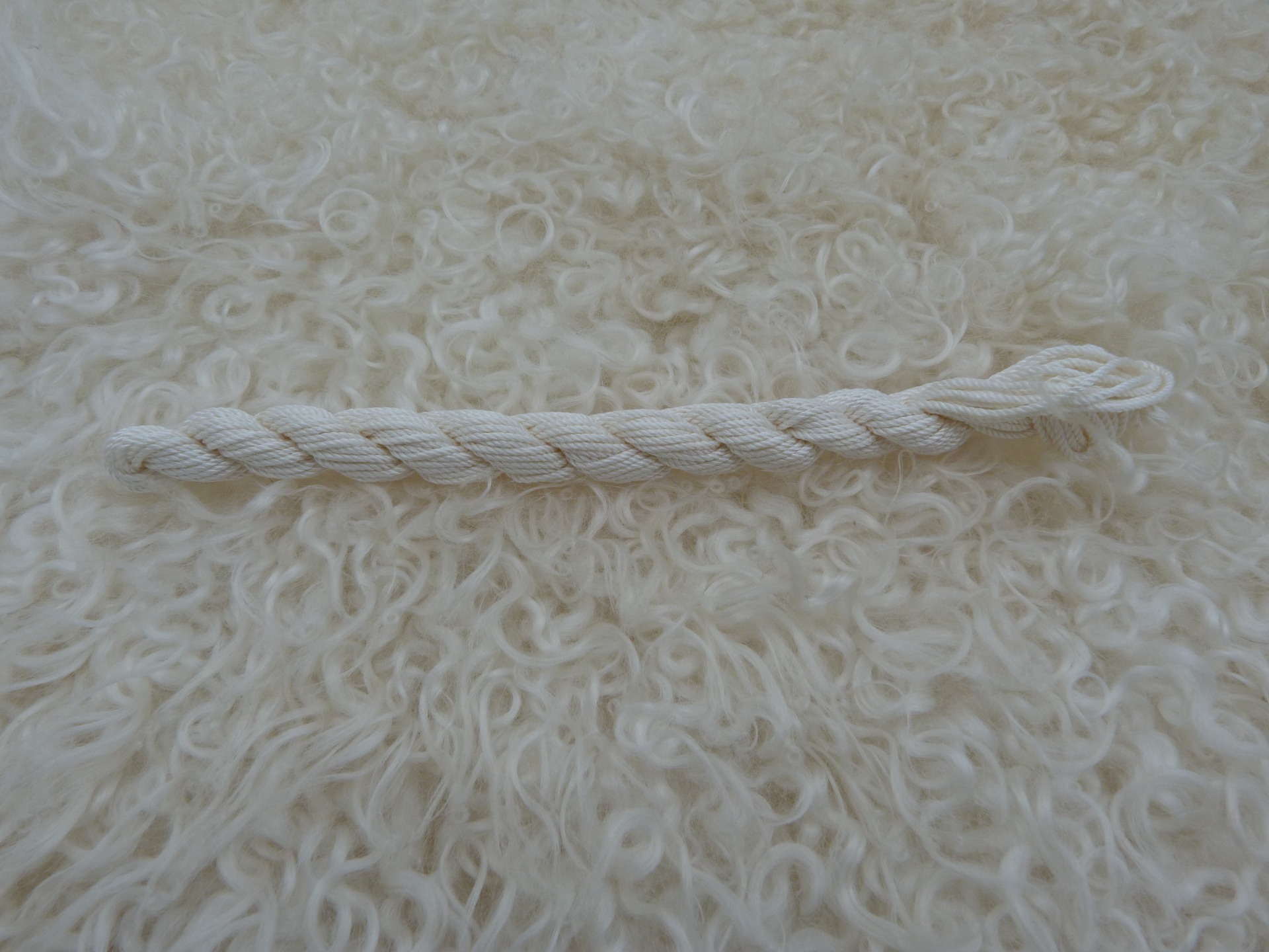 Deze gesponnen draad van 100% zijde is te splijten ( zie foto) in 8 draden, mooi te bewerken in gevilten werkstukken als borduurwerk of vilt de draad gewoon mee! Ook perfect voor sieraden of klein brei/haakwerk.